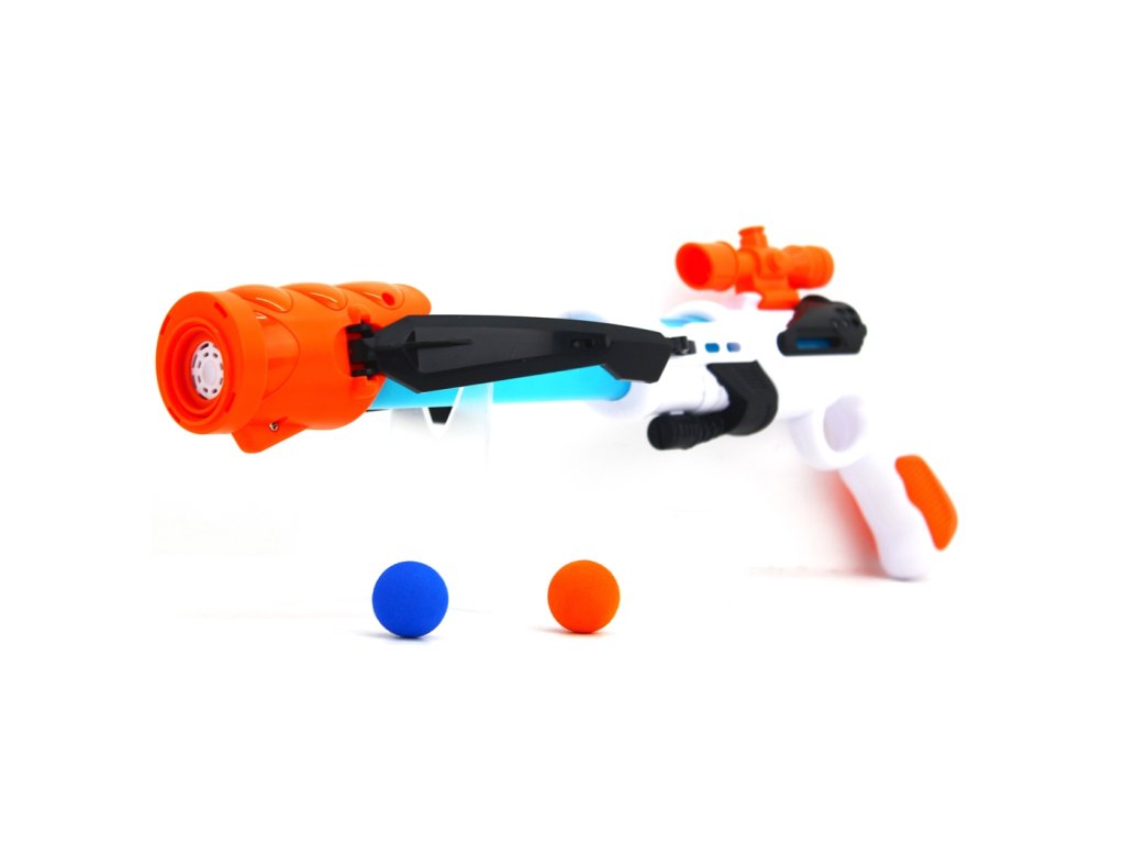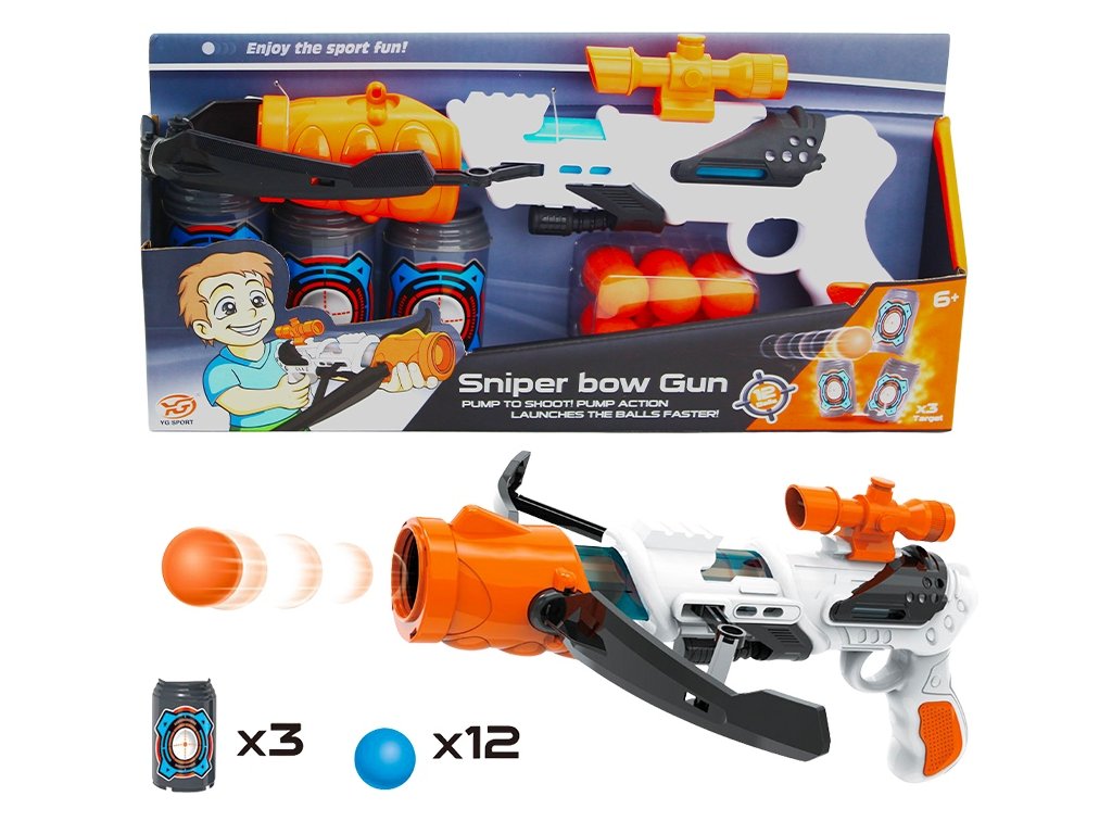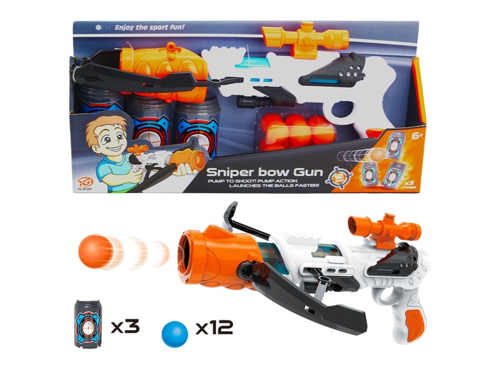 Sniperská puška se zaměřovačem pro malé nadšence akčních povolání. Střílí náboje v podobě malých pěnových míčků. Obsahuje: Sniperskou pušku, 12 pěnových míčků, 3 plastové plechovky.