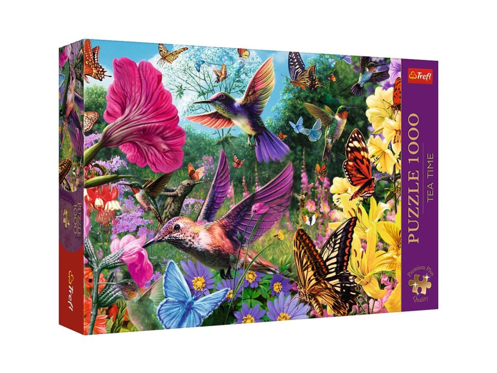 Puzzle Premium Plus - Čajový čas: Zahrada kolibříků 1000 dílků 68,3x48cm v krabici 40x27x6cm