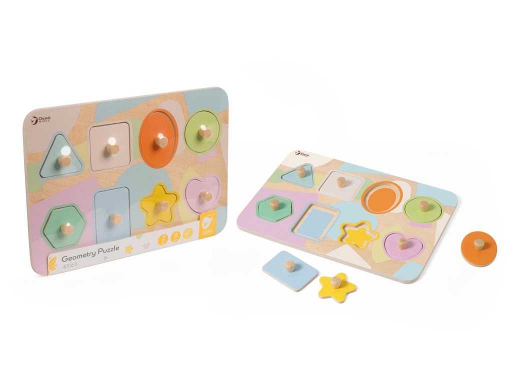 Puzzle/Vkládačka deskové geometrické tvary dřevo ve fólii 30x21cm 24m+