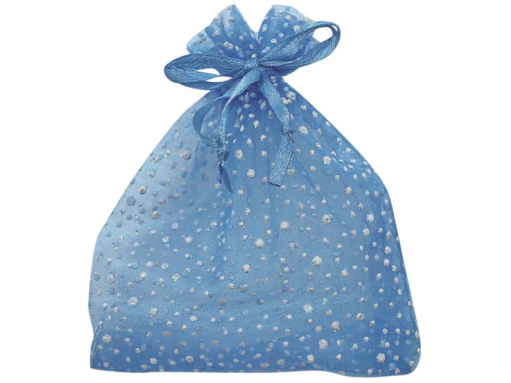 Pytlík organzový světle modrý se třpytkami. Velikost 9x12 cm