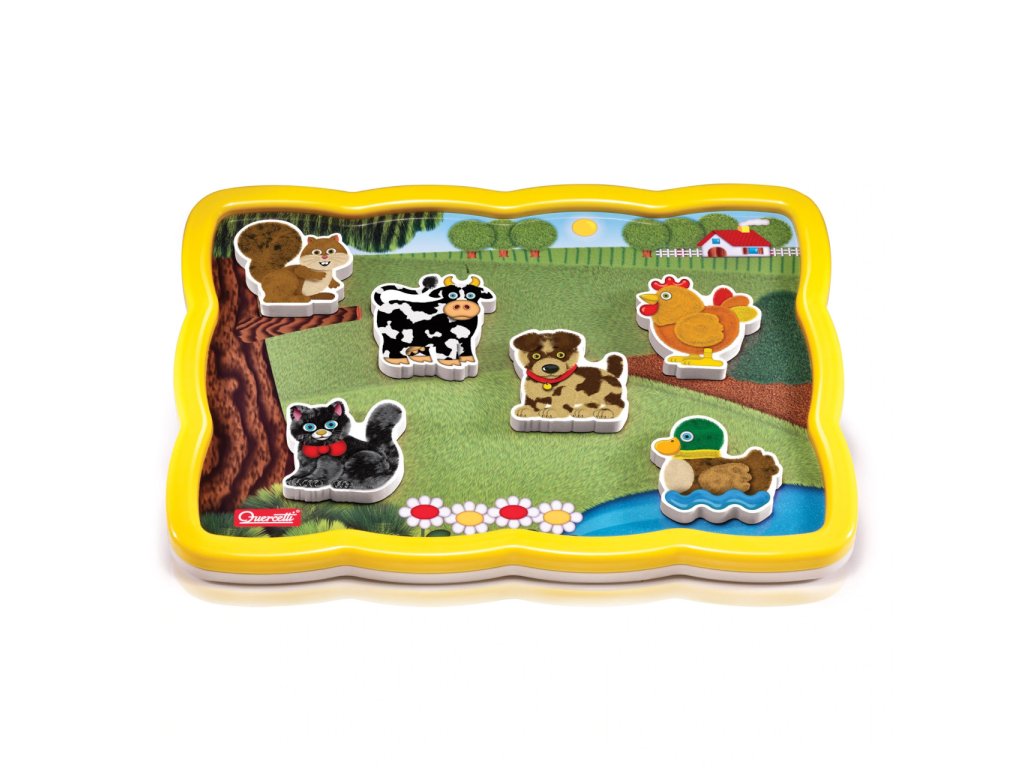 Vyprávění příběhů jde s roztomilými pestrobarevnými magnetky samo! Víceúčelová tabulka umožňuje na jedné straně vkládání magnetek do připravených otvorů, děti tak mohou rozvíjet rozpoznávání tvarů a barev. Obrázkové dílky díky magnetům do svých pozic dosednou a mohou v nich prakticky uložené čekat na další hry. Na druhé straně tabulky je připravena volná, jednoduše ilustrovaná plocha sloužící fantastickým dětským příběhům, které na ní lze s magnetkami rozehrát. Dílky vkládačky jsou oboustranně potištěné, široké a měkké, přizpůsobené ručkám nejmenších. Sada je vyrobena z kvalitního, odolného a nezávadného, plastu. Hlavní vlastnosti:tabulka se 12 magnetkyoboustranné, praktické, víceúčelové provedenívyrobeno v Itálii