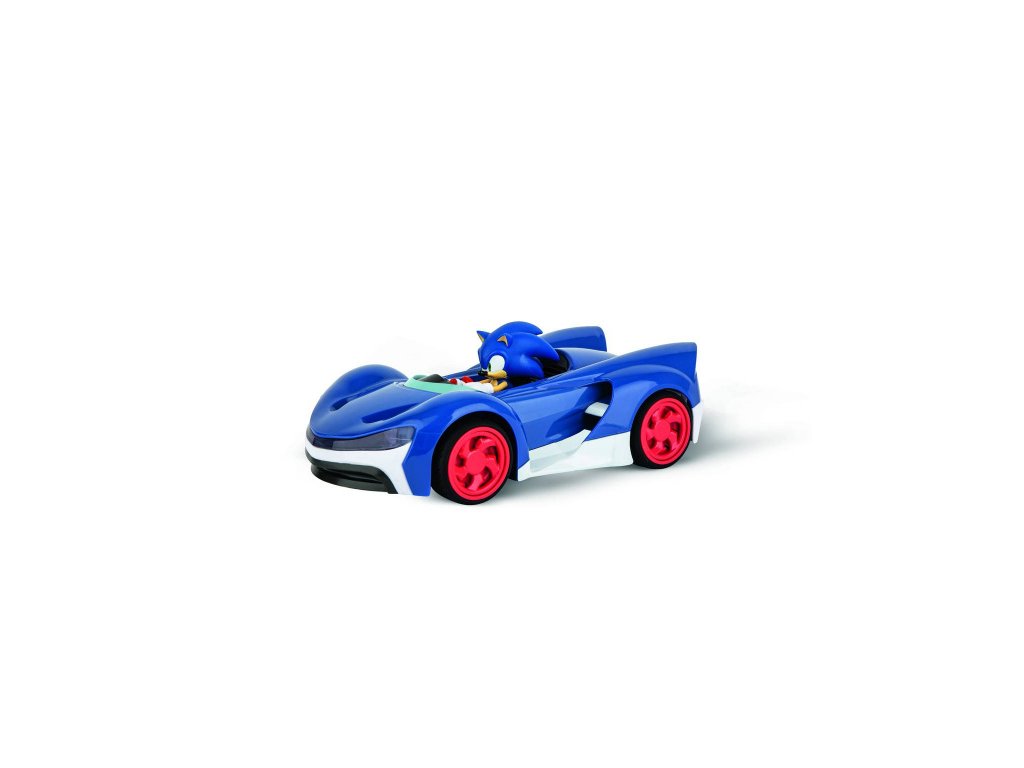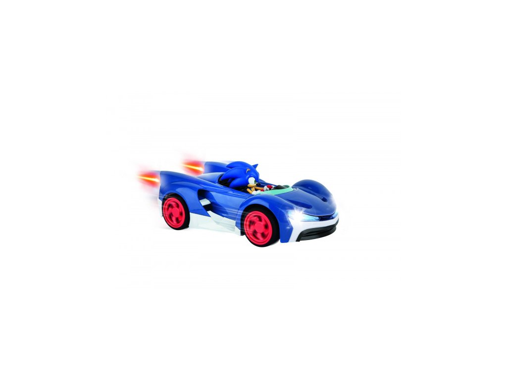 Modrý kultovní ježek Sonic startuje v autě na dálkové ovládání Carrera žhavé závody a ukazuje, že ví, co znamená rychlost nejen vlastních nohou. Ve svém modrostříbrném závodním autě se porazí jakéhokoli soupeře a ukáže jim, kdo je nejrychlejší ježek na světě. Jeho šik kára je vybavena LED světlomety a dalšími tuningovými díly, takže dokáže přesvědčit v každém závodě. Pneumatiky přepraví přibližně 27 cm dlouhé vozidlo bezpečně na jakémkoli povrchu. Řidiči od 6 let zažijí bláznivé závody až 20 minut dlouhé díky přiložené LiFePo4 baterii a bateriím.