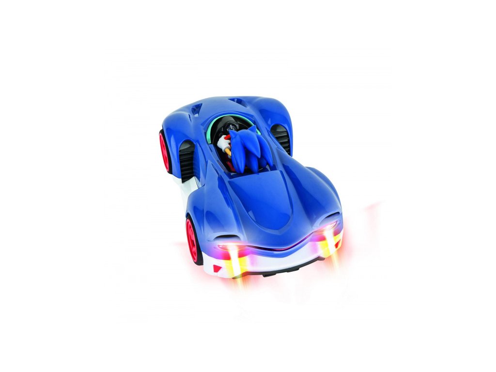 Modrý kultovní ježek Sonic startuje v autě na dálkové ovládání v měřítku 1:20, jezdí rychlostí 9 km/h, je veliký 27 cm, odpružení kol, frekvence 2.4GHz, doba jízda až 20 minut.