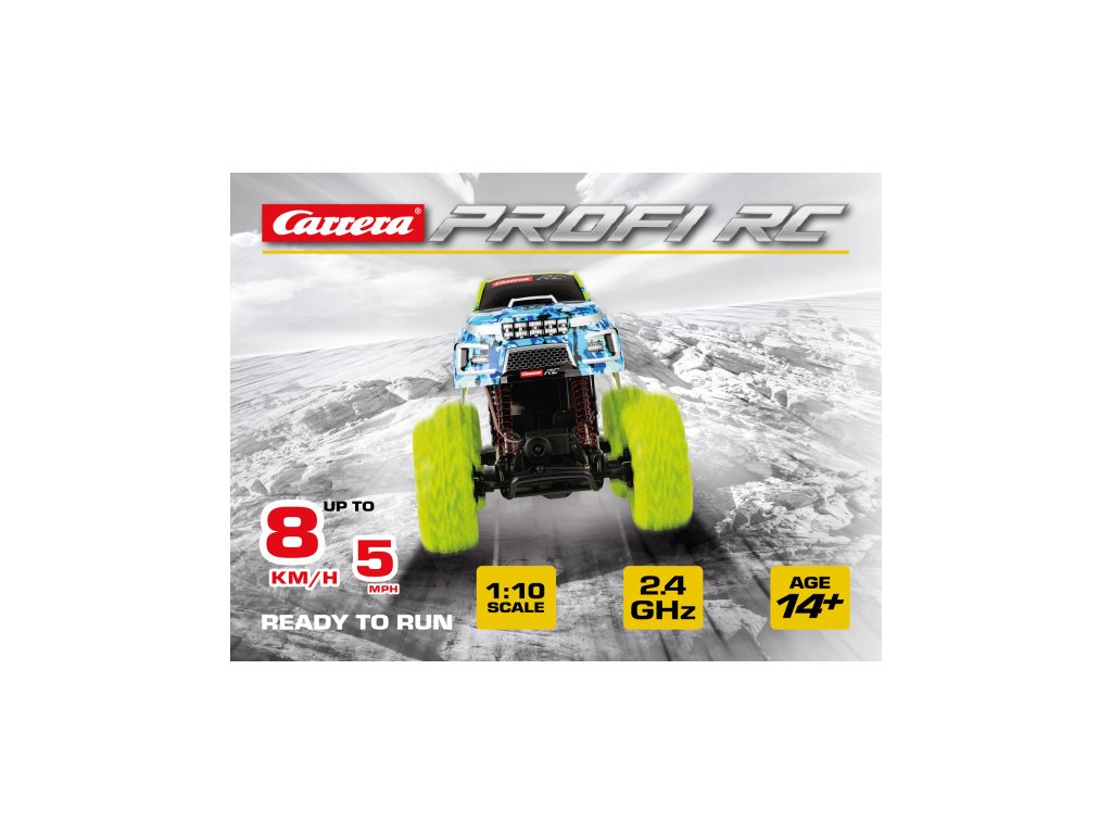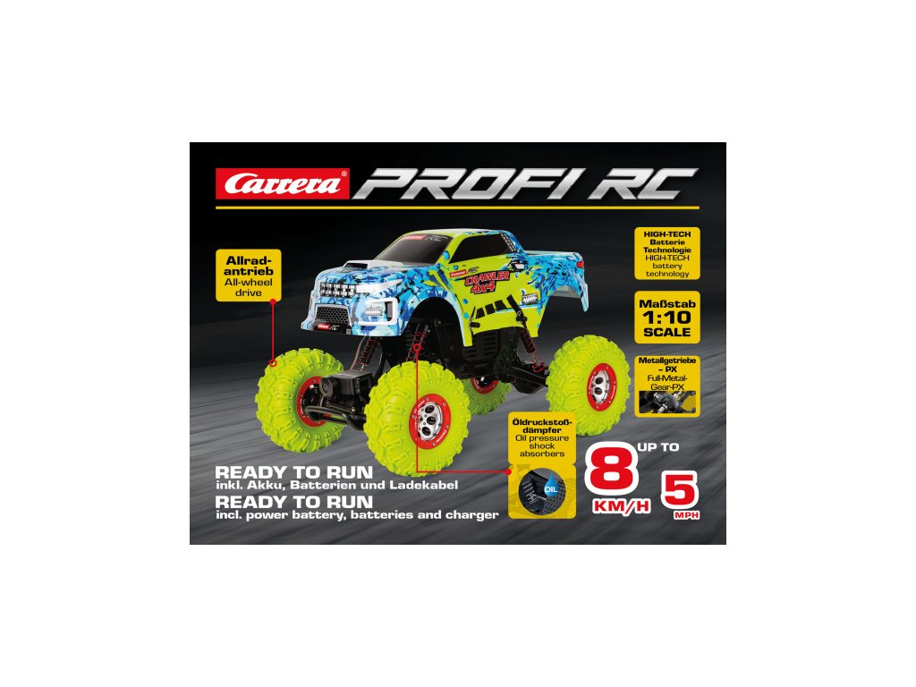 R/C auto Crawler - PX- v měřítku 1:10 do terénu, jezdí rychlostí 8 km/h, pohon všech kol, voděodolný povrch. Crawker PROFI Carrera se vyznačuje vysokou kvalitou, nejnovějšími technologiemi a speciálními funkcemi, které přináší fantastické zážitky!
