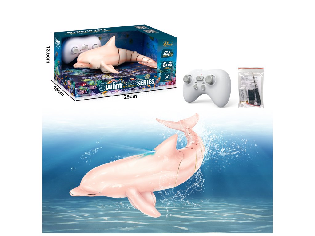 Roztomilý růžový delfín na dálkové ovládání - zábava ve vodě!Ponořte se do světa vodní zábavy s naším jedinečným R/C delfínem v krásné růžové barvě! Tento inteligentní mořský tvor vás ohromí svými realistickými pohyby a neuvěřitelnou rychlostí. Klíčové vlastnosti: Růžový design - roztomilý a stylovýVoděodolné provedení - určeno pro vodní prostředíRealistické pohyby - jako skutečný delfínVysoká rychlost - až 20 km/hDlouhý dosah - ovládání až na 40 metrů Technické parametry: Nabíjecí baterie 3.7V (součást balení)Doba nabíjení: 3-4 hodinyDoba hraní: 15-20 minutMaximální dosah: 40 metrůMaximální rychlost: 20 km/hUSB nabíjení - moderní a praktické Úžasné funkce: Pohyb všemi směry - vpřed/vzad/vpravo/vlevo360° rotace - akrobatické otočkyRychlé pohyby ocasní ploutve - přirozené plaváníRealistické chování - téměř jako živýLED efekty - zábava i ve tmě Obsah balení: 1× R/C Delfín růžový1× Dálkové ovládání1× Nabíjecí baterie 3.7V1× USB nabíjecí kabel1× Šroubovák1× Návod k použití R/C Delfín růžový - váš nový vodní kamarád čeká na společná dobrodružství! S maximální rychlostí 20 km/h a dosahem 40 metrů zažijete nezapomenutelnou zábavu.