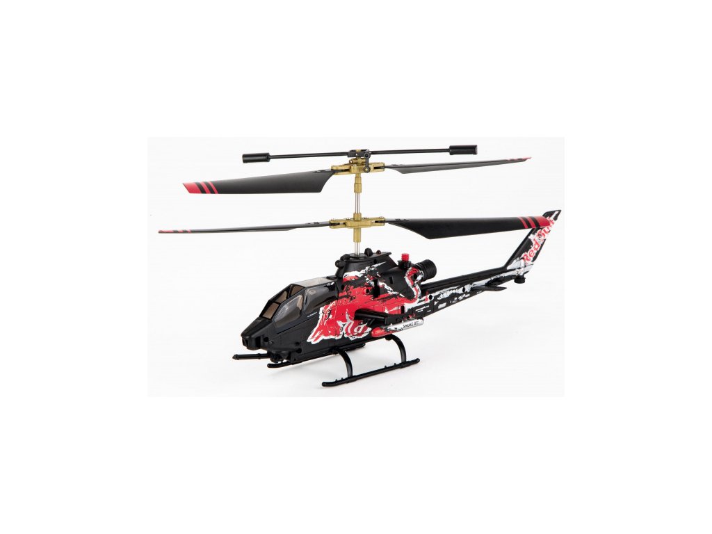 Vrtulník Red Bull Cobra TAH-1F na dálkové ovládání s dosahem 100m, velikostí 26cm, frekvencí 2.4GHz. Vrtulník má pokročilý stabilizační systém, odolnou konstru a LED osvětlení pro lepší orientaci.