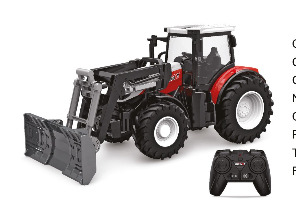 Ovládněte svou vlastní farmu s tímto profesionálním R/C traktorem, který zvládne těžkou práci díky funkční lžíci a realistickým funkcím!Hlavní prodejní argumenty: Funkční lžíce Pohyblivá lžíce pro realistické nakládáníZvedání a spouštění nákladuPerfektní pro hraní s pískem nebo drobnými předměty Výkonné funkce 4směrové ovládání (vpřed/vzad/vpravo/vlevo)Auto-Demo funkce - nahrává a přehrává poslední jízdySvětelné a zvukové efekty - jako opravdový traktorDosah až 50 metrů - velký akční rádius Rychlé nabíjení USB Nabíjení pouze 2 hodinyHraní 15-20 minut na jedno nabitíUSB kabel součástí balení Terénní schopnosti Zvládne 4 typy povrchů: Kamenitý terénHornatý terénTravnatý povrchPísečný povrch Technická data: Měřítko: 1:24Max. rychlost: 15 km/hFrekvence: 2.4 GHzNapájení traktoru: Nabíjecí baterie 3.7V (součástí)Napájení ovladače: 2× AAA baterie (nejsou součástí)Doba nabíjení: 2 hodinyDoba hraní: 15-20 minut Objednejte ještě dnes a dejte svému malému farmáři možnost zažít opravdové dobrodružství!