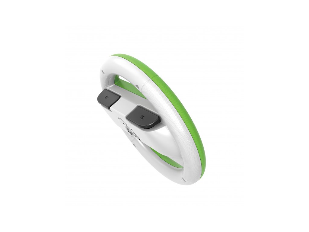 Lehký volant s texturovaným úchopem a rychlými L/R tlačítky pro maximální kontrolu v Mario Kart.