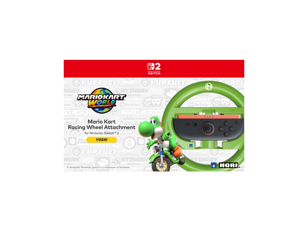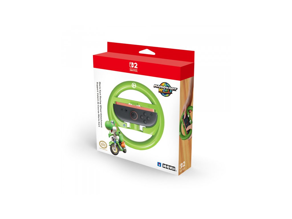 Projeďte tratě Mario Kart World s volantovým držákem HORI Mario Kart Racing Wheel Attachment (Yoshi). Stačí vložit ovladač Nintendo Switch™ 2 Joy-Con™ 2 nebo Nintendo Switch™ Joy-Con™ (prodává se samostatně) do držáku volantu a užít si lehkou konstrukci a texturované rukojeti. Díky citlivým ramenním tlačítkům získáte snadné ovládání a ještě lepší ponoření do hry. Oficiálně licencováno společností Nintendo®.