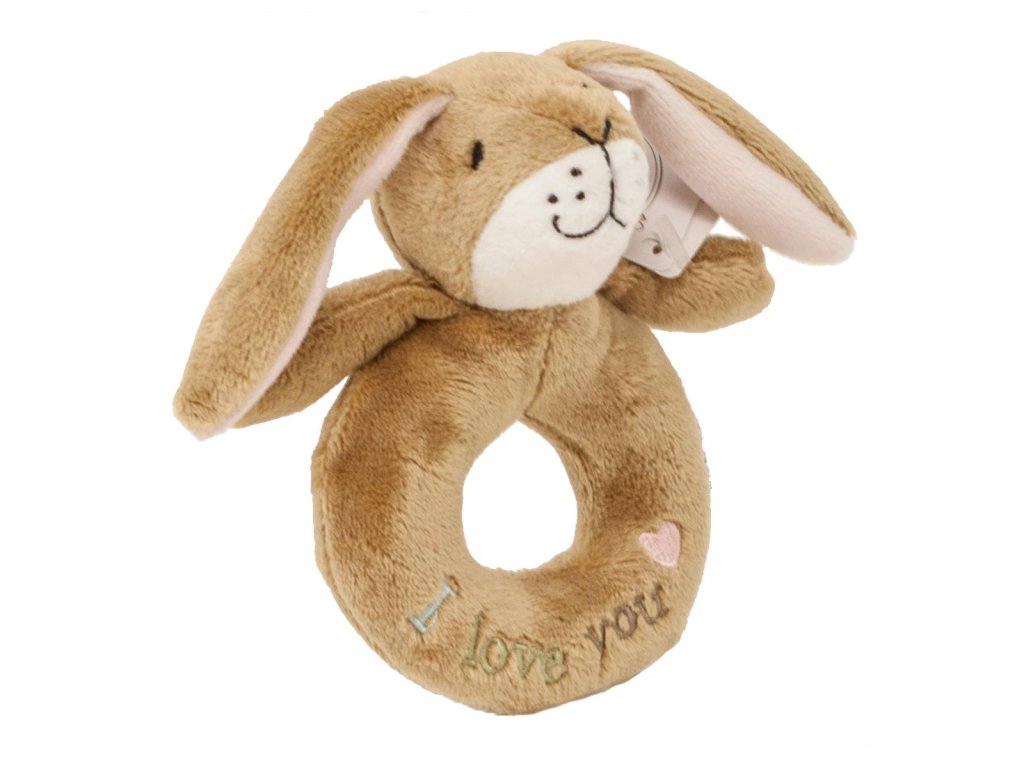 Chrastítko ve tvaru zajíčka inspirované knihou „Hádej, jak moc tě mám rád“ upoutá pozornost dětí. Chrastítko je vyrobeno z měkkého plyše a má vyšívaný obličej a na kroužku nápis „I love you“. Perfektní dárek, který bude stimulovat smysly dětí.