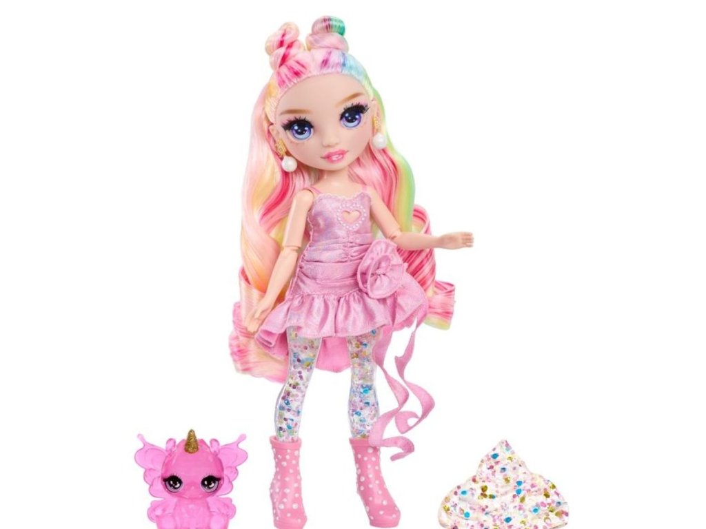 Rainbow High panenky jsou ještě kouzelnější! Společně se svými malými sestřičkami objevují nový svět, nové outfity a zcela nový způsob hraní. Každá panenka přichází s průhledným slizem a čtyřmi druhy třpytek. Třpytky přidej do slizu a uprav ho podle své fantazie. Poté sliz dej do průhledných nohou panenky a sleduj, jak se její nohy promění! Je to tak snadné! Sundej zadní část nohou, přidej sliz, zacvakni nohy zpět a můžeš si hned hrát! A to nejlepší? Můžeš to dělat znovu a znovu. Nebo můžeš třpytky a sliz kombinovat mezi různými panenkami.