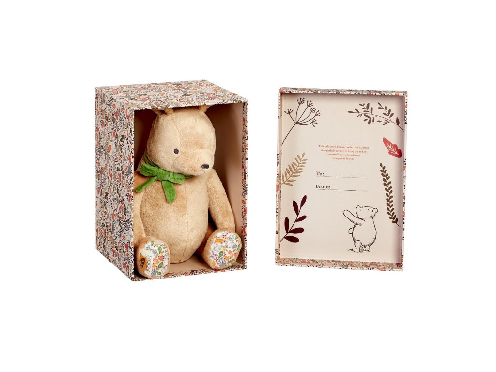 Vytvořte si přátelství, které vydrží na celý život. Tento rozkošný medvídek je perfektním prvním společníkem pro miminko. Klasický plyšák, který oživuje rozmarné vyprávění příběhů A. A. Milne ze stokorcového lesa. Medvídek má kolem krku uvázanou stylovou zelenou šálu s mašličkou a jeho tlapky mají krásný vzor inspirovaný lesem. Medvídek je vyroben ze super měkkých látek a z udržitelných materiálů. Výplně jsou vyrobeny z recyklovaných plastových láhví a recyklované plyšové látky. Roztomilá plyšová hračka Medvídek Pú je dokonalý mazlivý přítel a je i skvělým novorozeneckým dárkem. Dodáváno v krásně ilustrované dárkové krabičce, do které je možné vepsat věnování. Hlavní vlastnosti: vhodné od narozenívyrobeno z udržitelných materiálůnáplně vyrobeny z recyklovaných materiálůperfektní jako dárek pro miminko