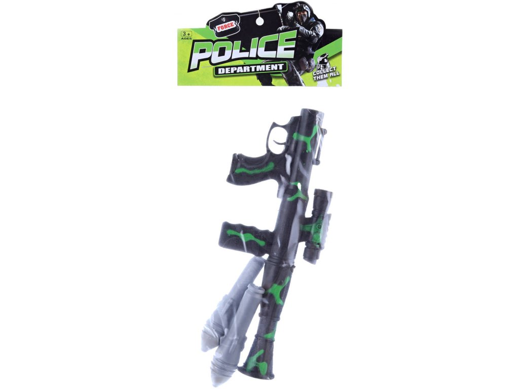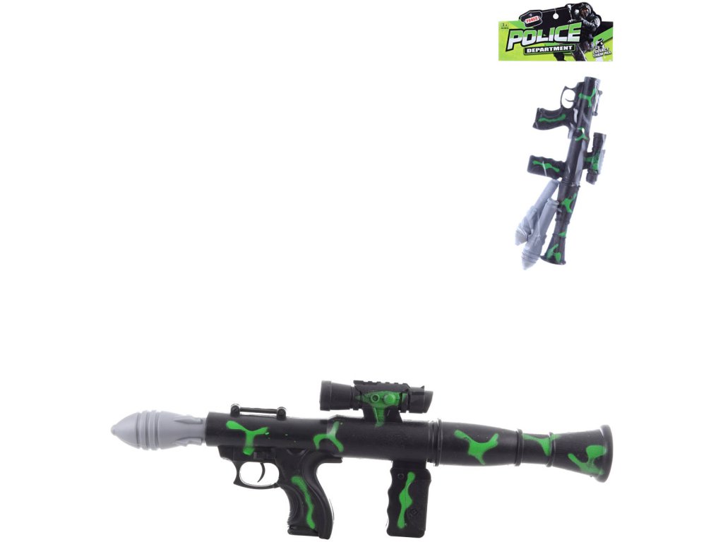 Dětská plastová zbraň černý raketomet se zaměřovačem, s potiskem "maskáč", pro všechny malé bojovníky a vojáky. Součástí 3 soft rakety. Baleno v sáčku. Velikost zbraně 28cm.