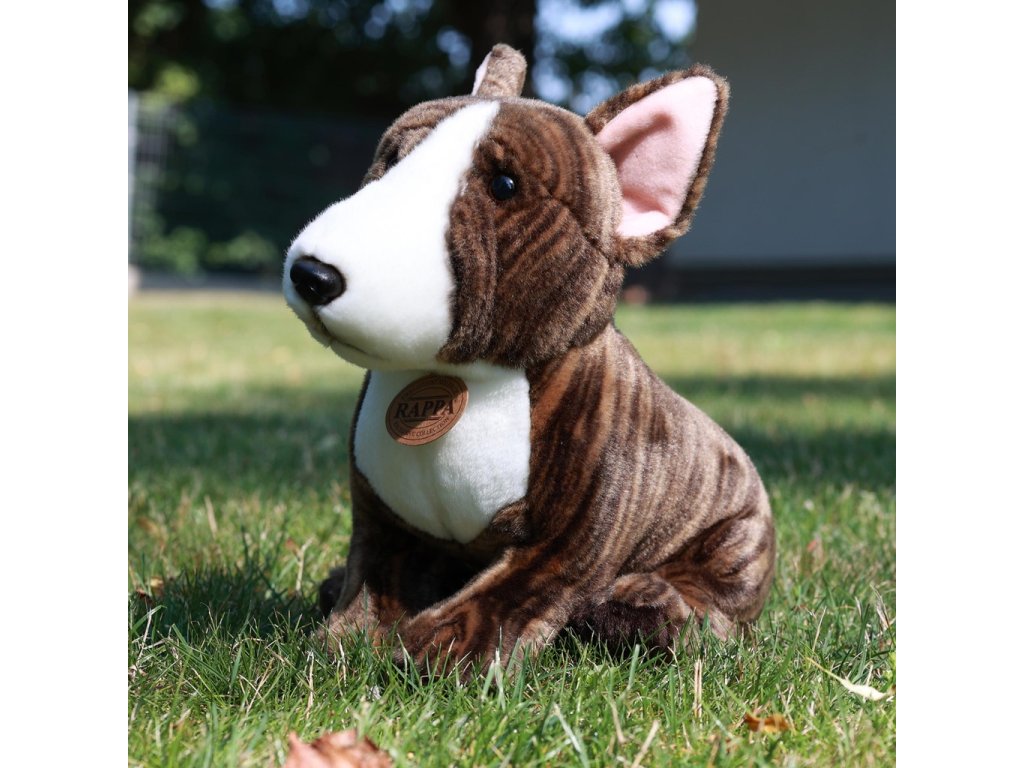 Plyšový pes anglický bulteriér o velikosti 30 cm je ručně ušitý z vysoce kvalitního jemného plyše, a díky tomu vypadá jako živý. Tento plyšový kousek je ideálním dárkem pro všechny milovníky heboučkých plyšáků. Je součástí exkluzivní kolekce plyšových hraček značky RAPPA. Hlavní vlastnosti: realistické zvířátkoruční zpracovánívysoce kvalitní plyšECO-FRIENDLY výplň Co to vlastně ECO‑FRIENDLY znamená? Výplň plyšové hračky je vyrobena z recyklovaných PET lahví. Tento materiál je zcela bezpečný, na omak nerozeznatelný od standardní výplně a plně atestovaný pro bezpečnost i těch nejmenších. Rozhodli jsme se jít zelenou cestou co nejméně zatěžující životní prostředí – cestou ECO‑FRIENDLY.