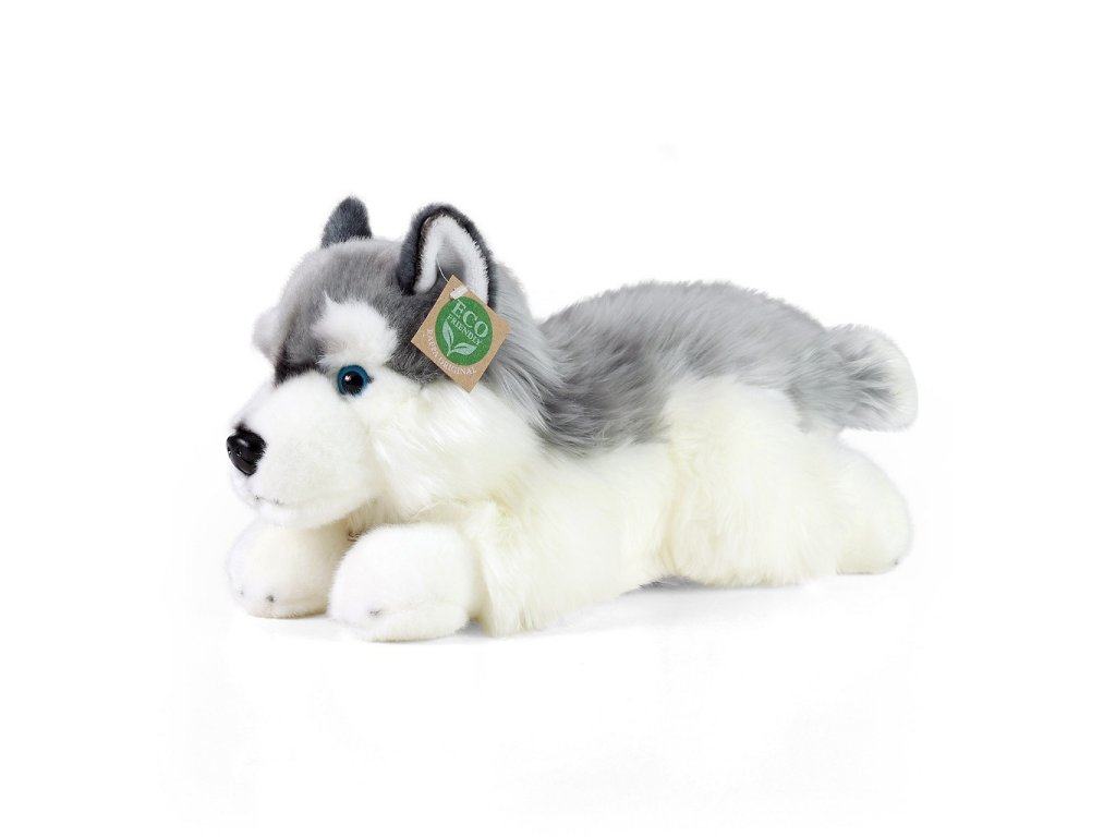 Rozkošný plyšový pes Husky nesmí chybět v žádném dětském pokojíčku! Tento ležící pes je vyroben z exkluzivního, velmi kvalitního plyše a jeho délka je cca 30 cm. Tento senzační plyšový kousek je ideální i jako dárek! Hlavní vlastnosti: realistické zvířátkoruční zpracovánívysoce kvalitní plyšECO-FRIENDLY výplň Co to vlastně ECO‑FRIENDLY znamená? Výplň plyšové hračky je vyrobena z recyklovaných PET lahví. Tento materiál je zcela bezpečný, na omak nerozeznatelný od standardní výplně a plně atestovaný pro bezpečnost i těch nejmenších. Rozhodli jsme se jít zelenou cestou co nejméně zatěžující životní prostředí – cestou ECO‑FRIENDLY.