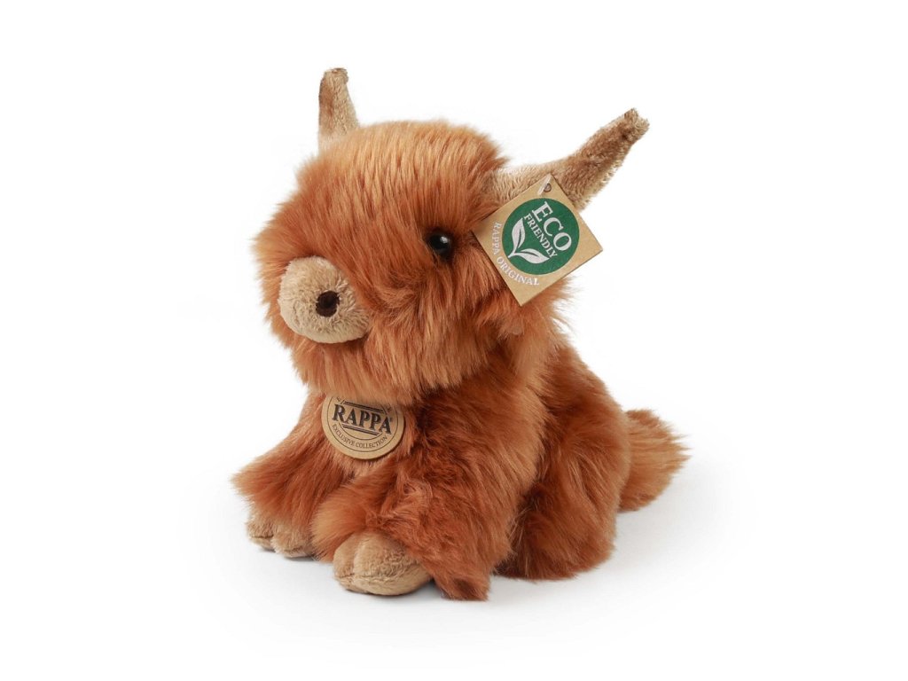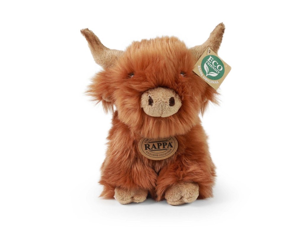 Plyšový skotský náhorní skot o velikosti 20 cm s typickými dlouhými rohy a hustou srstí je ručně ušitý z vysoce kvalitního, jemného plyše, a díky tomu vypadá jako živý. Tento plyšový kousek je ideálním dárkem pro všechny milovníky heboučkých plyšáků. Je součástí exkluzivní kolekce plyšových hraček značky RAPPA. Hlavní vlastnosti: realistické zvířátkoruční zpracovánívysoce kvalitní plyšECO-FRIENDLY výplň Co to vlastně ECO‑FRIENDLY znamená? Výplň plyšové hračky je vyrobena z recyklovaných PET lahví. Tento materiál je zcela bezpečný, na omak nerozeznatelný od standardní výplně a plně atestovaný pro bezpečnost i těch nejmenších. Rozhodli jsme se jít zelenou cestou co nejméně zatěžující životní prostředí – cestou ECO‑FRIENDLY.