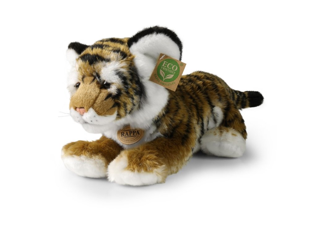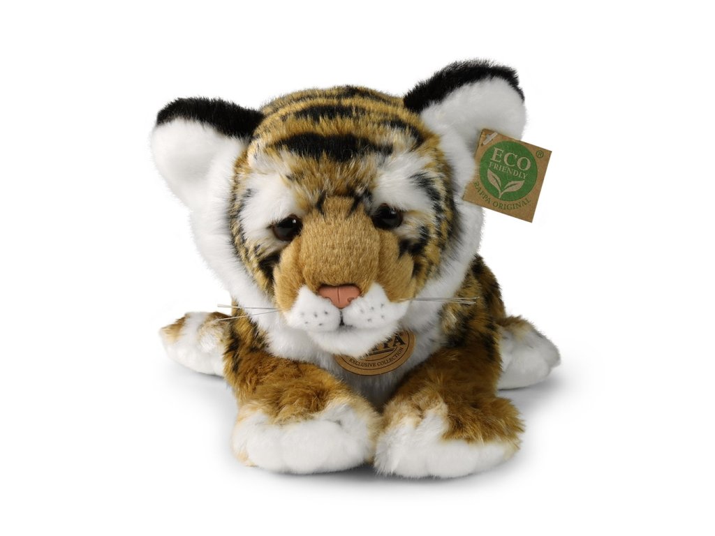 Plyšový tygr o velikosti 33 cm je ručně ušitý z vysoce kvalitního jemného plyše, a díky tomu vypadá jako živý. Tento plyšový kousek je ideálním dárkem pro všechny milovníky heboučkých plyšáků. Je součástí exkluzivní kolekce plyšových hraček značky RAPPA. Hlavní vlastnosti: realistické zvířátkoruční zpracovánívysoce kvalitní plyšECO-FRIENDLY výplň Co to vlastně ECO‑FRIENDLY znamená? Výplň plyšové hračky je vyrobena z recyklovaných PET lahví. Tento materiál je zcela bezpečný, na omak nerozeznatelný od standardní výplně a plně atestovaný pro bezpečnost i těch nejmenších. Rozhodli jsme se jít zelenou cestou co nejméně zatěžující životní prostředí – cestou ECO‑FRIENDLY.