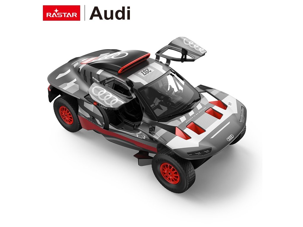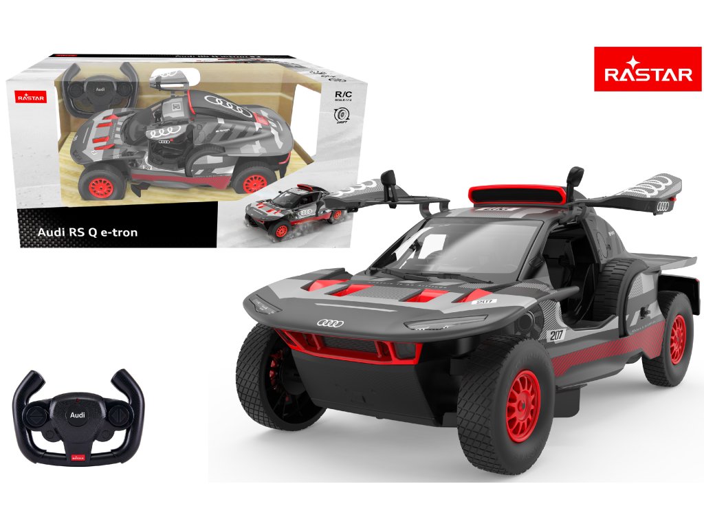 Rastar R/C 1:14 Audi RS Q e-tron - Dakarský elektrický bojovník Ovládněte legendu Rallye Dakar! Rastar R/C 1:14 Audi RS Q e-tron přináší do vašich rukou věrnou repliku jednoho z technologicky nejvyspělejších rallyových vozidel, které se účastnilo legendární Rallye Dakar. Přeneste se do světa elektrických pouštních rally s tímto futuristickým modelem plným funkcí a emocí! Proč je tento model výjimečný? Dakarská legenda - Replika skutečného rallyového speciálu, který pokořil nejnáročnější pouštní tratě světa Dvě rychlostní úrovně - Režim A: 7-9 km/h | Režim B: 9-11 km/h - přizpůsobte rychlost svým dovednostem a terénním podmínkám Driftovací režim - Díky rezervním kolům na bocích vozidla můžete auto přeměnit na driftovací stroj! Stačí namontovat rezervní kola místo zadních Funkční světla - Přední LED osvětlení pro autentický rallyový vzhled Interaktivní prvky - Ručně otevíratelné dveře pro ještě větší herní zážitek Futuristický design - Moderní aerodynamický vzhled s rallyovými detaily a charakteristickým zbarvením Audi Sport Technické parametry: • Měřítko 1:14 - délka cca 34 cm• Dvě rychlostní úrovně pro různé styly jízdy• Rezervní kola pro driftovací režim• Funkční přední světla• Otevíratelné dveře• Materiál: vysoce kvalitní plast• Plná funkčnost - vpřed, vzad, vlevo, vpravo Napájení: Vozidlo: 5x AA baterie | Ovladač: 2x AA baterie - baterie nejsou součástí balení Pro koho je určen? Ideální pro fanoušky Rallye Dakar, elektrických vozidel a rallyového stylu jízdy od 6 let! Perfektní volba pro každého, kdo touží po dobrodružství a moderních technologiích. Rastar R/C 1:14 Audi RS Q e-tron - pokořte poušť a staňte se dakarským šampionem! Doporučený věk: 6+ | Série: Rastar | Délka: cca 34 cm