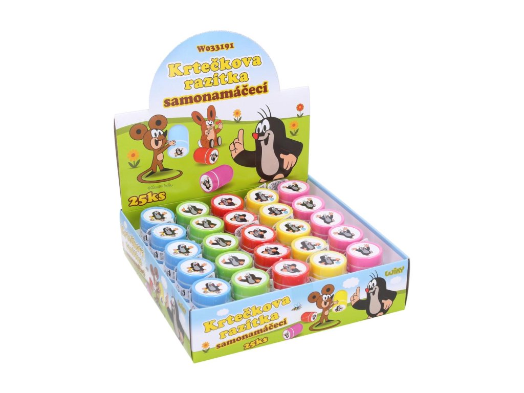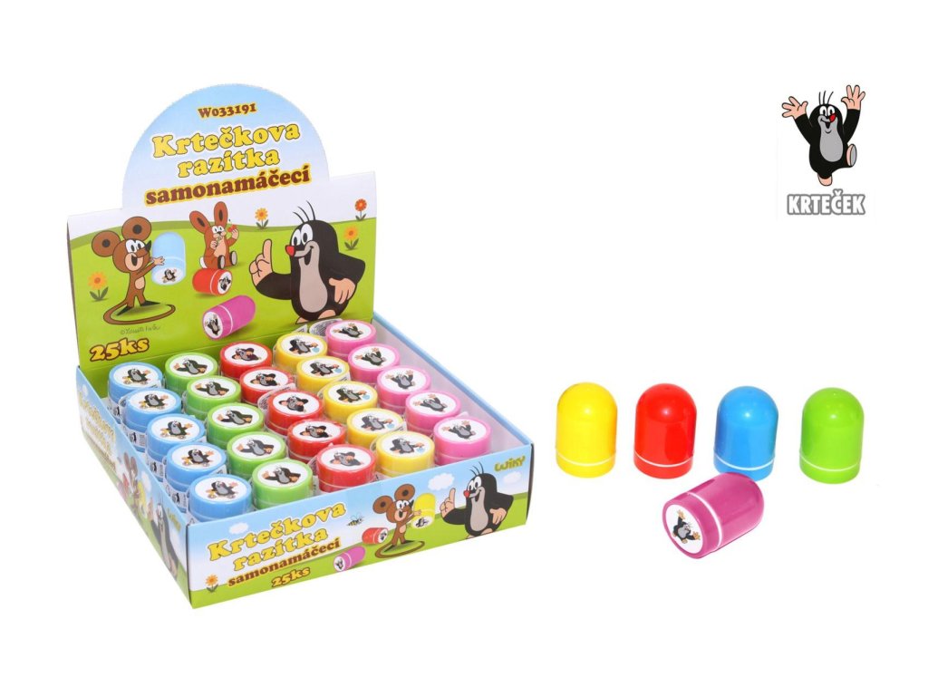 Razítko samonamáčecí Krtek plast 3x4,5cm 5 barev 25ks v boxu
