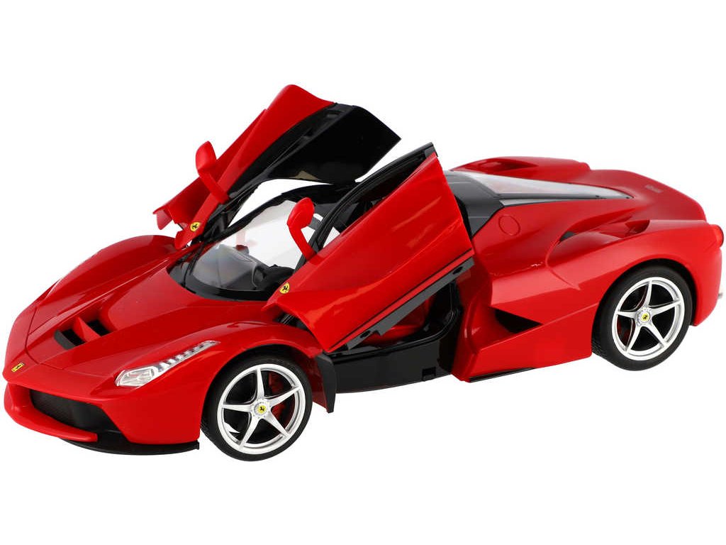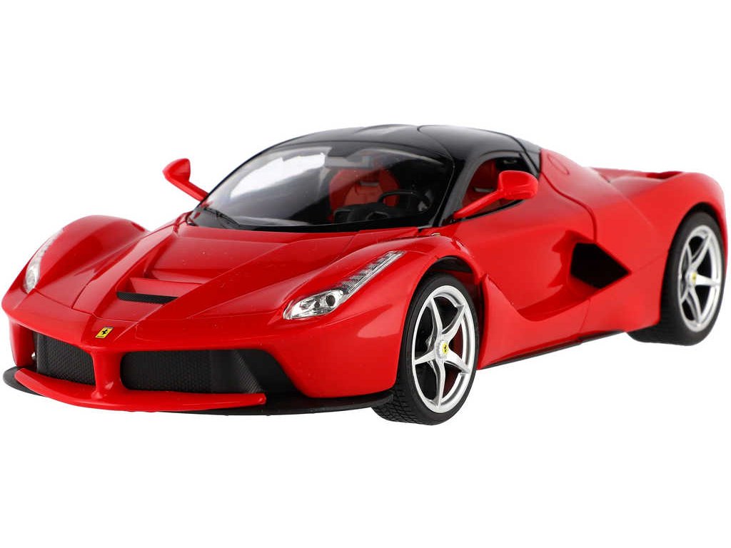 Krásný RC model auta Ferrari Kabriolet v červené barvě s černými prvky. Jedná se o propracovaný model s plastovými doplňky, auto má otevírací dveře. Auto je na dálkové ovládání ve tvaru