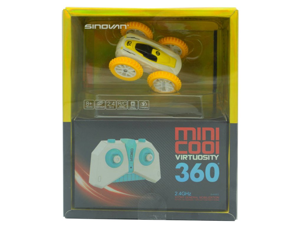 RC Auto kaskadérské mini na vysílačku žuté přetáčení 360 stupnů
