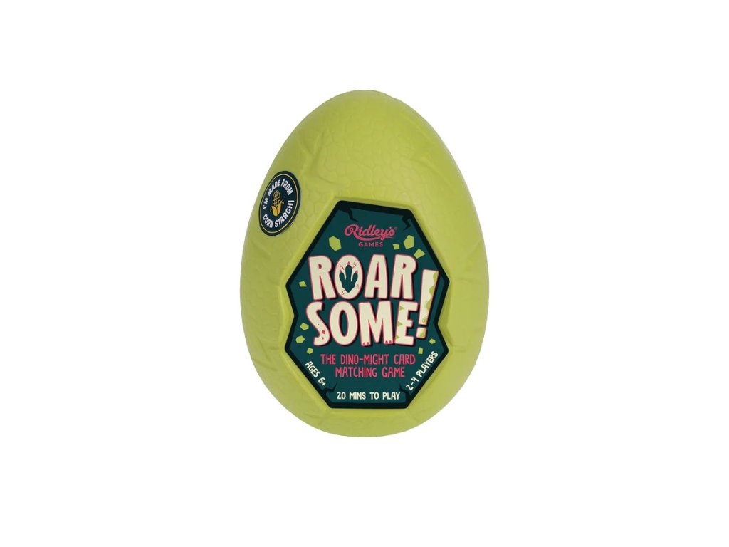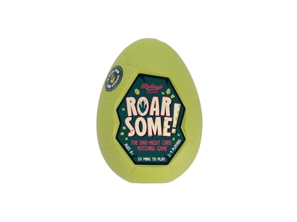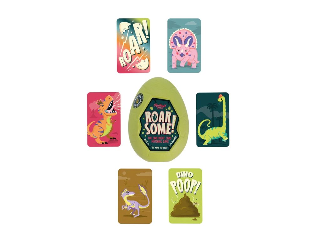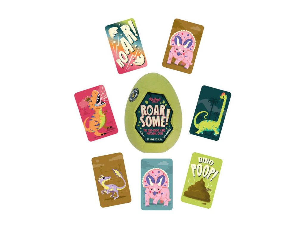 Karetní hra Roarsome je krásně ilustrovaná karetní hra, která obsahuje 60 oboustranných hracích karet. Cílem hry je posbírat 3 shody po sobě, za ně získáte Roarsome body. Vítězí hráč, který získá 10 bodů jako první. Hráči se střídají v tahání karet, které umisťují na hrací plochu, snaží se sestavit sloupec nebo řádek 3 stejných karet. Pokaždé, když nastane shoda, se karty obrátí. Nová šance na shodu… ale pozor na dinosauří výkaly!Obal ve tvaru dinosauřího vejce je vyroben za použití kukuřičného škrobu, je praktický a pro děti velmi atraktivní. Karty jsou tištěny inkousty na rostlinné bázi na FSC papír. Hra pro přátele, rodinu a milovníky dinosaurů, od 6 let pro 2-6 hráčů, průměrná hrací doba 15 minut. Součástí balení je návod v anglickém, francouzském, italském, německém a španělském jazyce.Firma Ridley's Games vyrábí originální a kvalitní hry, puzzle a hračky, které podnítí představivost, zaženou nudu a otevřou dětem svět zábavy. Hlavní vlastnosti: pro 2–4 hráčůhrací doba cca 15 minutpraktické a atraktivní baleníideální pro fanoušky dinosaurů Zkrácený návod:V této jednoduché karetní hře je cílem vytvořit co nejvíce shod 3 karet po sobě a získat co nejvíce Roarsome bodů. Vítězí hráč, který získá 10 bodů jako první. Na začátku každé hry zamíchejte balíček karet a rozložte 9 karet do mřížky 3x3. Zbylé karty v balíčku položte na stůl – jsou oboustranné, takže nezáleží na tom, jak jsou otočeny. Mřížka musí mít vždy velikost 3x3. Začíná hráč, který naposledy viděl dinosaura (fosilii, v pohádce, v parku). Potáhne si kartu z balíčku a otočí ji. Shoduje se tato karta s některou v mřížce? Shoda může být pouze horizontální a vertikální, nikoliv diagonální. Pokud se karta neshoduje, umístěte ji na volné místo nebo na jakoukoliv kartu v mřížce, hra pokračuje. Pokud se karta shoduje, umístěte kartu vedle shodné karty v mřížce. Pokud tímto dokončíte trojici, vezměte si balíček pod jednou z karet (včetně), zbylé dva balíčky shodných karet otočte. Nová šance na shodu! Pokud nově odhalené karty vytvoří další shodu 3 karet, vezměte si jeden z těchto balíčků a zbylé dva otočte. Takto pokračujte, dokud budete na nově otočených kartách nacházet shodu. Každá sebraná karta má hodnotu jednoho bodu. Vítězí hráč, který jako první získá 10 Roarsome bodů. V balíčku jsou také speciální karty. Karty ROAR mohou být použity jako libovolný dinosaurus nebo barva, jsou perfektní pro vytvoření tajné shody, pokud při jejich položení dokážete dobře imitovat dinosaura! Dávejte si pozor na karty DINO POOP – dinosauří výkaly. Dobrá zpráva je, že pokud budete hrát s touto kartou na hlavě, získáte za ni bod. Někdy vyhrajete, jindy zase prohrajete… Obsah balení: 60 oboustranných karetnávod EN, FR, IT, DE, ES