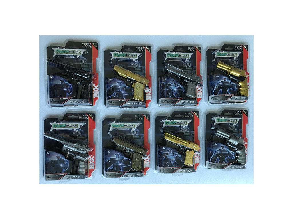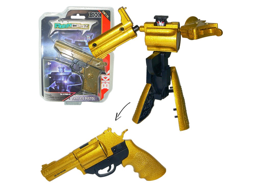 Dva v jednom! Zbraň nebo robot? Je to jenom na vás. Velmi jednoduše přeměníte svoji pistoli na robota a zase zpět. Pistole jsou propracované do drobných detailů, mají kovové tělo a povětšinu skryté plastové části, díky kterým se zbraň jednoduše promění na roboty s řadou pohyblivých částí. - Věk 6+ - Do poznámky uveďte druh o který máte zájem