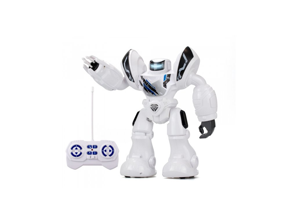 Robot na dálkové ovládání, který střílí náboje a může se naprogramovat na 20 akcí, velikost 30 cm. Vše je doprovázeno zvukovými i světelnými efekty (LED obličej).