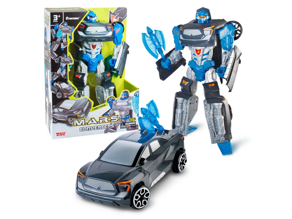 Seznamte se s neuvěřitelným robotem Cyberhaul! Tento úžasný stroj je zároveň schopným bojovým robotem i super rychlým autem! S vaší pomocí dokáže odvážný bojovník měnit svůj tvar a přinést vzrušující akci na novou úroveň. Připravte se na boj proti zlu v ulicích města, protože 37 cm vysoký robot M.A.R.S Converters Cyberhaul se světelnými a zvukovými efekty je připraven vyrazit! Hlavní vlastnosti: Transformace 2v1: Kompletně proměnitelný z robota na auto a zpět Intuitivní ovládání: Pohybujte končetinami robota a proměňte ho v úžasné auto Zvukové efekty: Robotické zvuky, zvuk motoru a působivá hudba Světelné efekty: Blikající světla v očích robota po stisknutí tlačítka Odnímatelná zbraň: Použijte ji v režimu robota nebo ji uložte do speciálního prostoru v autě Rozvíjí dovednosti: Podporuje představivost, soustředění, jemnou motoriku a kreativitu dětí Technické specifikace: Výška robota: 37 cm Napájení: 2 x 1,5V AG13 baterie (součástí balení) Obsah balení: 1× Robot M.A.R.S Converters - Cyberhaul 1× Odnímatelná zbraň 1× Ilustrovaný návod k použití Věkové doporučení: Vhodné pro děti od 3 let S robotem M.A.R.S Converters - Cyberhaul nikdy nezastavíte a nevzdáte to! Proměňte každý den v napínavé dobrodružství plné akce.