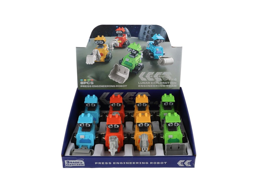 Robot vesmírný Zmáčkni a jeď plast 14cm na setrvačník 4 druhy 8ks v boxu