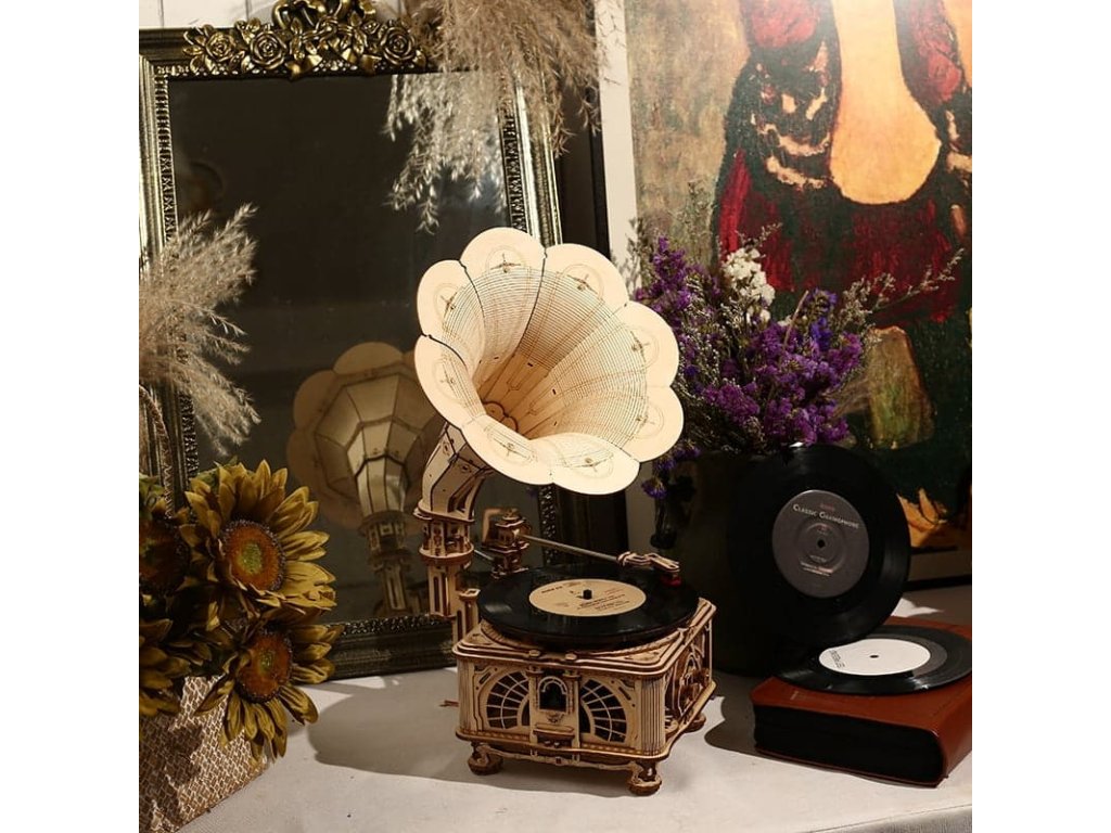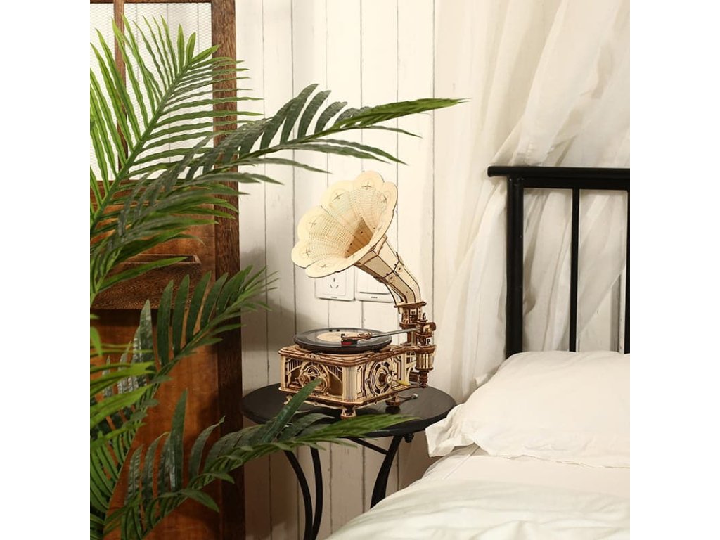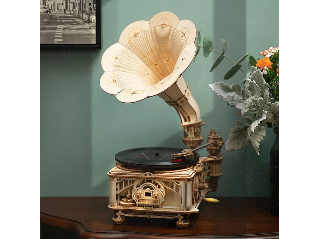 RoboTime 3D dřevěná mechanická skládačka Gramofon (elektrický pohon)