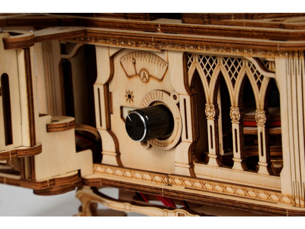 Jak zní historie? Stavebnice gramofonu z překližky. Retro designem, inspirovaným gramofonem vynalezeným Thomasem Edisonem, Vás přenese do 19. století. Není to jen model, skutečně umí přehrávat desky a je k němu i dodávána 7" gramodeska obsahující trojici písní (The Merry Gent, Memory Of A Dance, The Giant Killers). Zařízení disponuje ručně, klikou, poháněnou mechanikou a dynamem. Je možné jej ale pohánět i elektricky, pomocí vestavěného micro-USB konektoru. Podporuje desky o rozměrech 17,5 cm (7") a 25 cm (10") a všechny jim odpovídající rychlosti přehrávání. Hlasitost reprodukce lze upravovat pomocí otočného ovladače. Jedinečný dárek pro všechny milovníky kutilství a hudby, ale také luxusní interiérová dekorace do pokoje či kanceláře. Skládačka je dodávána v nesloženém stavu, balena v krabici. Vybaveno detailním návodem k sestavení. Hlavní vlastnosti:gramofon a 7" gramodeska424 precizně vyřezaných dílkůvysoká obtížnost sestaveníruční pohon nebo pomocí micro-USBdodávaná gramodeska obsahuje písně:The Merry GentMemory Of A DanceThe Giant Killers