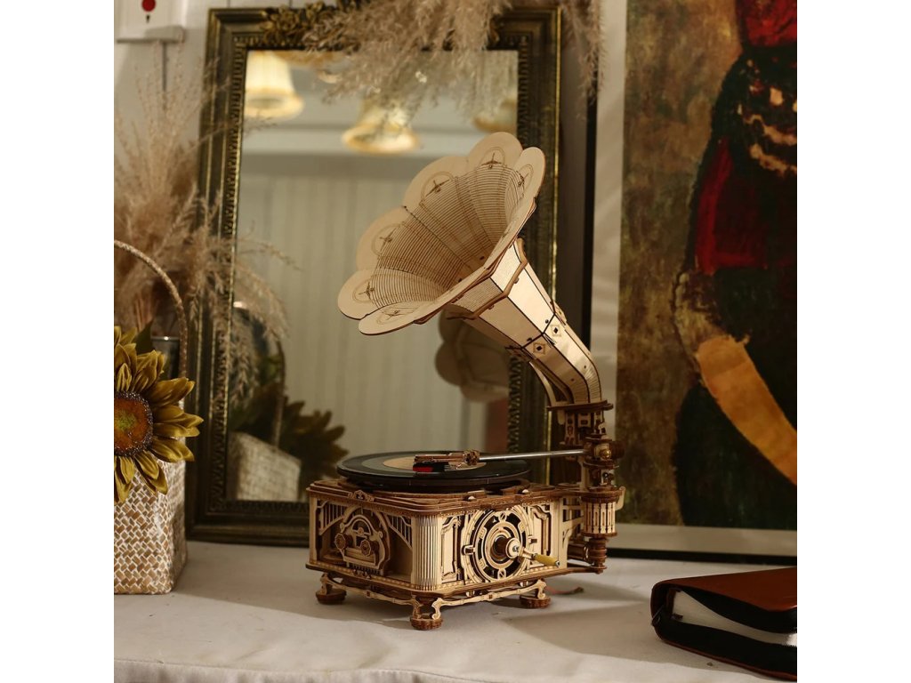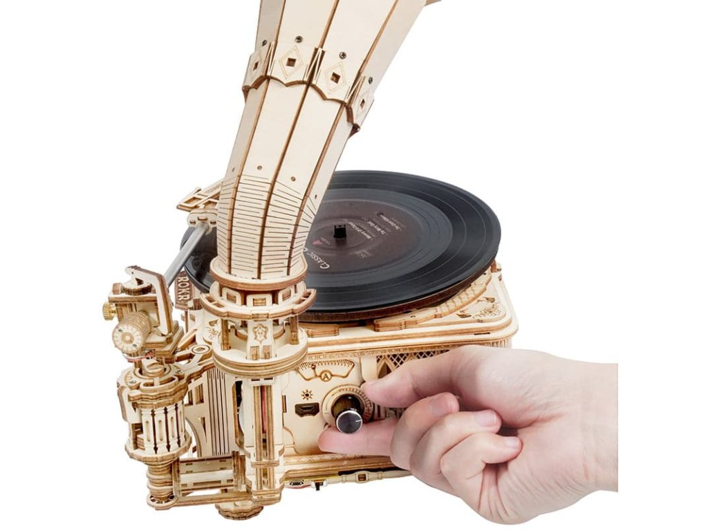RoboTime 3D dřevěná mechanická skládačka Gramofon (elektrický pohon)