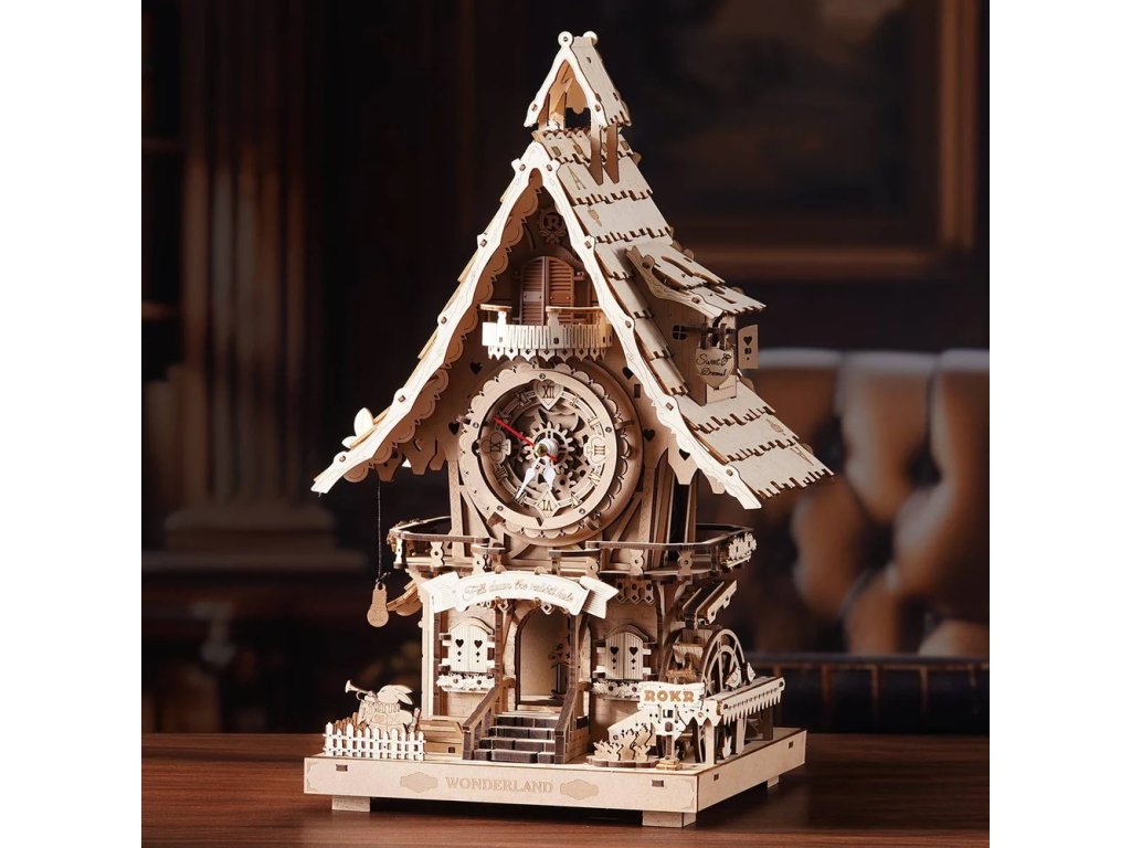 RoboTime 3D dřevěná mechanická skládačka Kukačkové hodiny
