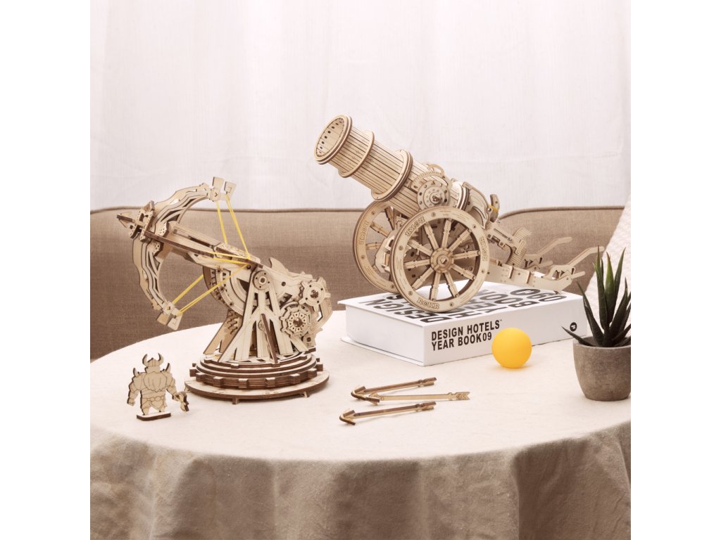 Staňte se slavnými dobyvateli prostřednictvím řady mechanických skládaček obléhacích strojů Robotime. Zakuste výzvu při jejich stavbě, procvičujte logiku i zručnost, a s pomocí hotových modelů pak uspořádejte ty nejpamátnější bitvy! Skvělý dárek pro všechny fanoušky válečných her, vojenství a historie! Obléhací kanón se může pyšnit mnoha atraktivními detaily věrně odrážejícími středověké zbraně. Jeho rozměrná hlaveň je přizpůsobena ke střelbě pingpongových míčků, což z něj dělá zvláště univerzální hračku. Mechanismus střelby je ručně natahován a je opatřen spouští, úhel odpalu je možno volně nastavit. Díky velkým kolům lze kanón snadno přemístit, a přizpůsobit tak situaci na bojišti. Skládačka je dodávána v nesloženém stavu, balena v krabici. Vybaveno detailním návodem k sestavení. Hlavní vlastnosti:158 precizně vyřezaných dílkůstřední obtížnost sestavenívýsledný model je schopen střelby pingpongových míčků