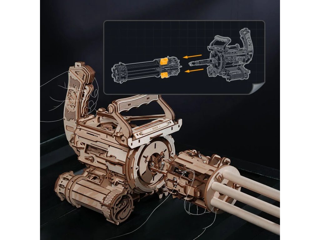 RoboTime 3D dřevěná mechanická skládačka Rotační kulomet