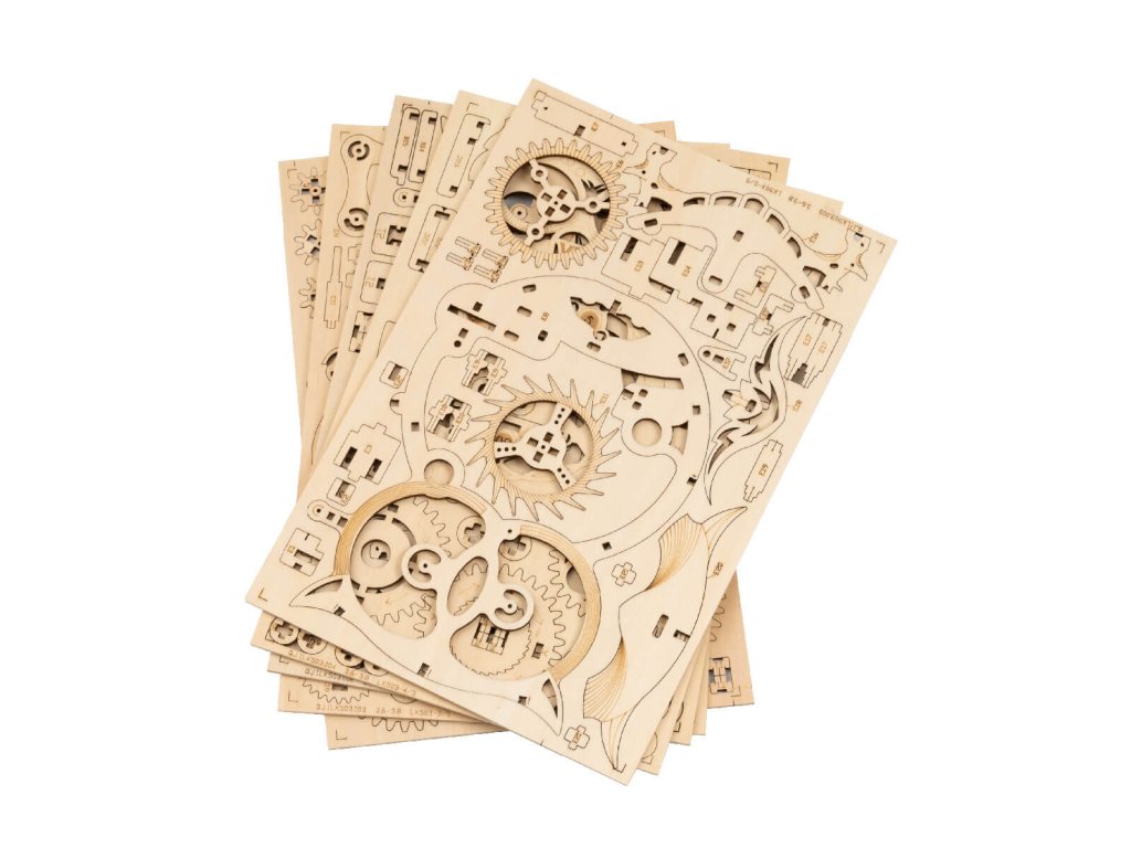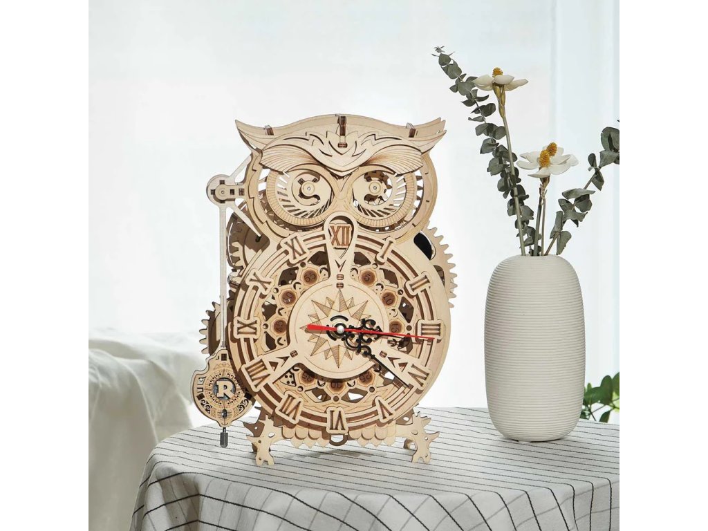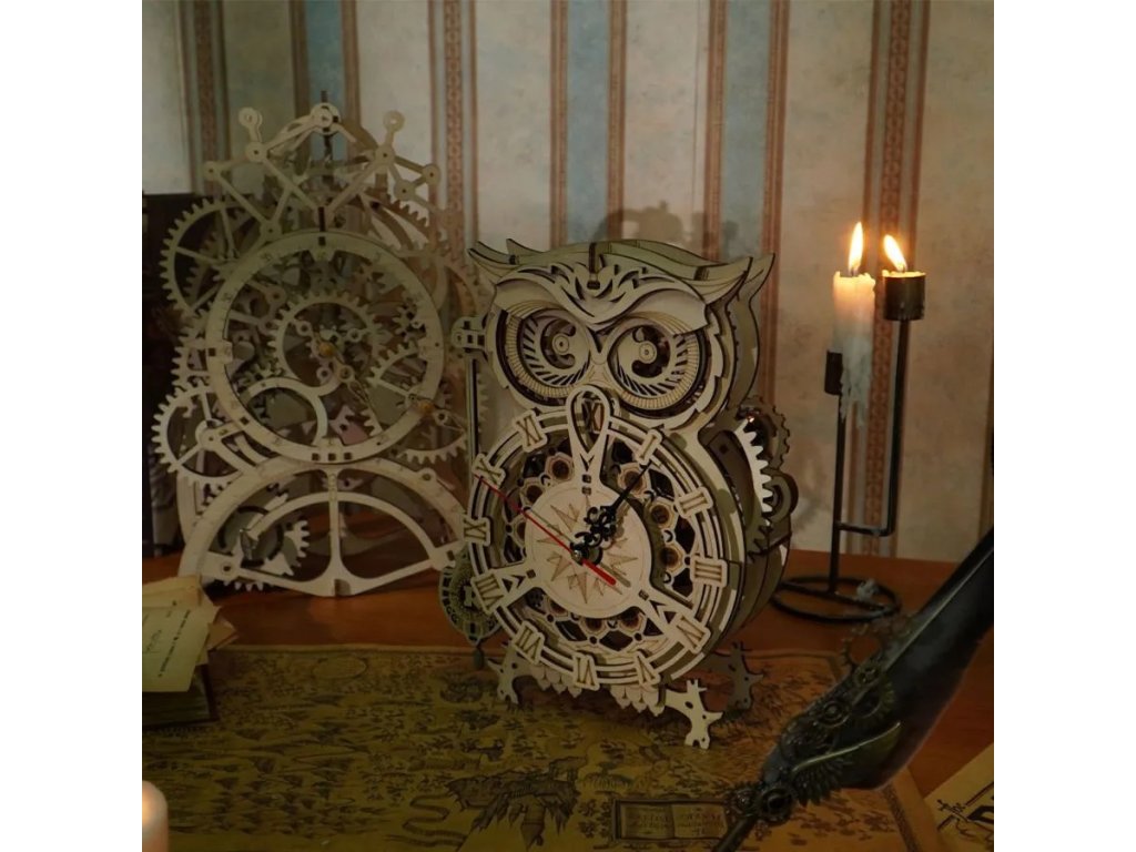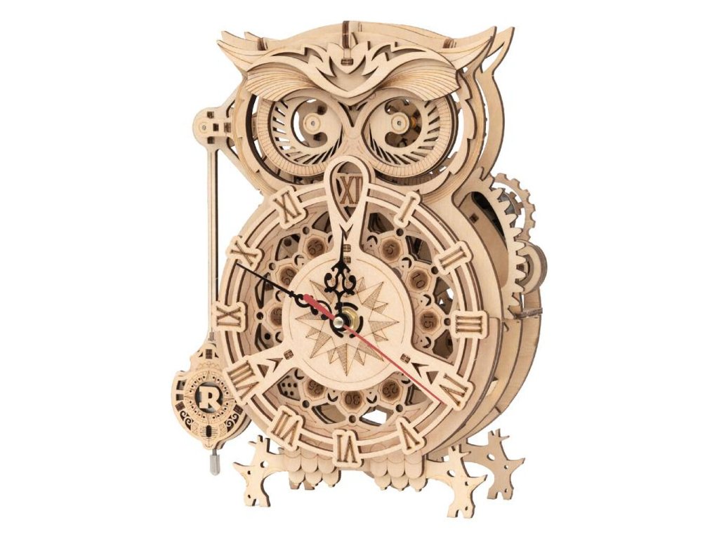 Je nutno bedlivě sledovat čas? Stavebnice hodin s minutkou vyrobená z překližky. V podobě sovy neujdou pozornosti, celková podoba je navíc příhodně doplněna mechanickými detaily. Konstrukce umožňuje nahlížet nejen na chod kyvadla, ale i na práci únikového mechanismu a soukolí. Plně funkční hodiny jsou však poháněny elektricky a natahovací mechanismus minutky vybavené signalizací slouží jako atraktivní doplněk, nabízí maximální rozsah třicet minut. Jedinečný dárek pro všechny milovníky kutilství, luxusní interiérová dekorace do pokoje či kanceláře. Skládačka je dodávána v nesloženém stavu, balena v krabici. Vybaveno detailním návodem k sestavení. Hlavní vlastnosti:elektrické hodiny s natahovací minutkou161 precizně vyřezaných dílkůstřední obtížnost sestaveníhodiny napájeny AA bateriíminutka opatřena signalizacírozsah minutky 1–30 minut