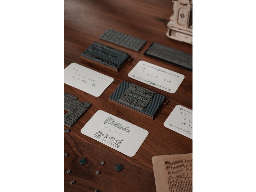Vítejte v tiskovém závodě Little Bear kde špetka inkoustu udělá z Vašich nápadů divy! Zatáhněte za páku a parta pilných tlapek se vrhne do akce! Aby medvědí kolegové při práci lépe viděli, je továrna opatřena o LED světla. Klasický tiskařský lis využívá pohyblivý princip tisku, jenž umožňuje libovolně upravovat a bez námahy tisknout zprávy a karty. Černá tisková kazeta, do níž se přidává inkoust na vodní bázi, je znovu použitelná - hraní a tisk s medvídky je tudíž bez mezí! Vosk není součástí balení (můžete např. použít obyčejné svíčky, voskovky, včelí vosk či jiný podobný materiál). Hlavní vlastnosti: 303 precizně vyřezávaných dílůdoba sestavení cca 5 hodindřevo je přírodní a ekologicky šetrnéLED osvětlenívhodné od 14 let