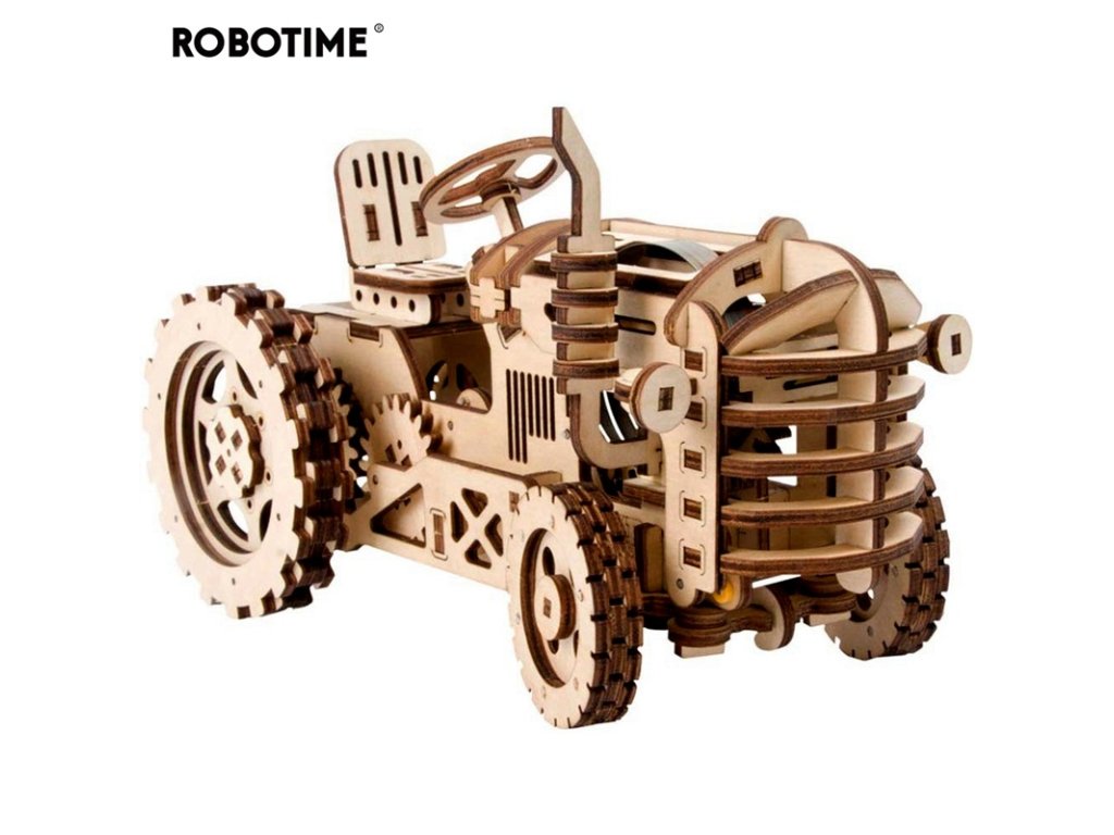 RoboTime 3D dřevěná mechanická skládačka Traktor