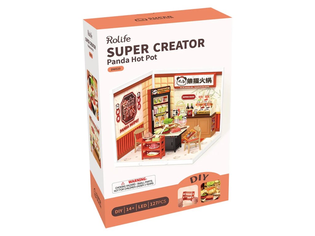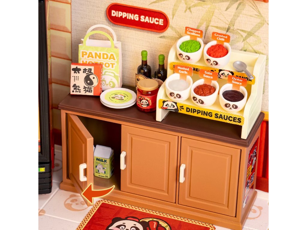 RoboTime 3D dřevěná skládačka Miniatura domečku Asijské bistro Panda Hot Pot