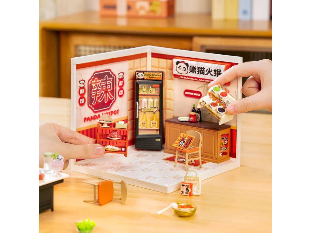 RoboTime 3D dřevěná skládačka Miniatura domečku Asijské bistro Panda Hot Pot