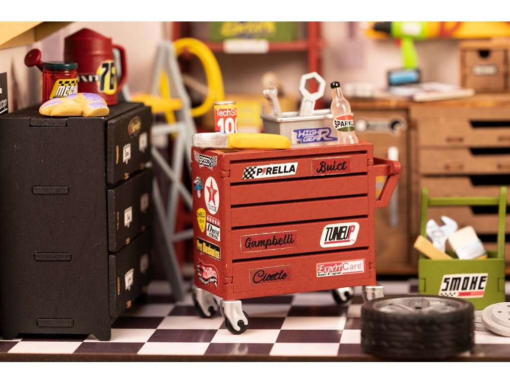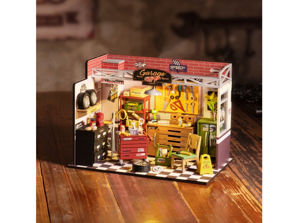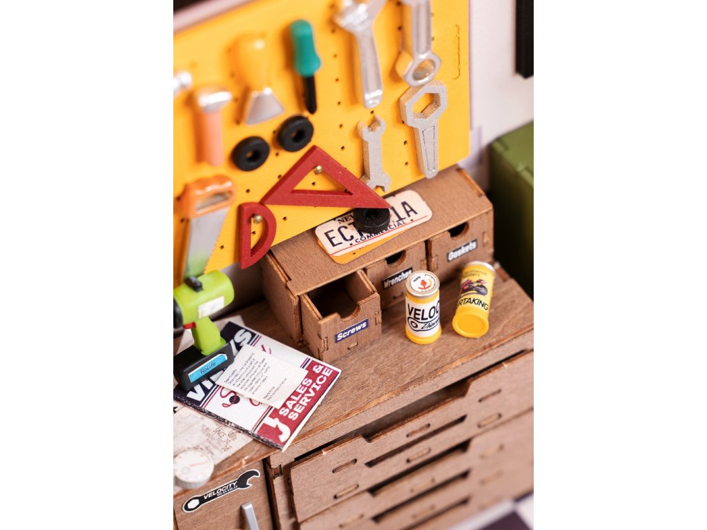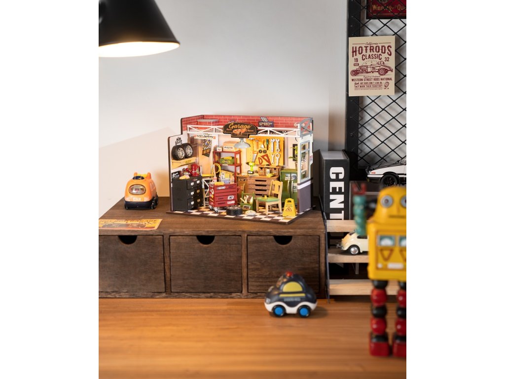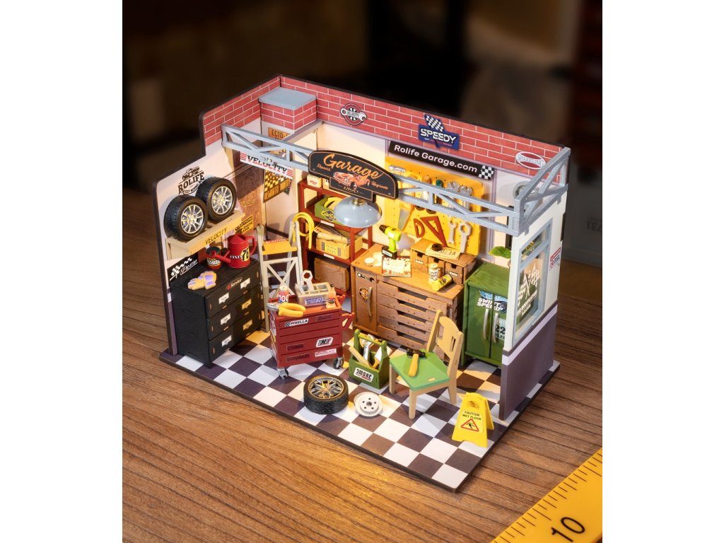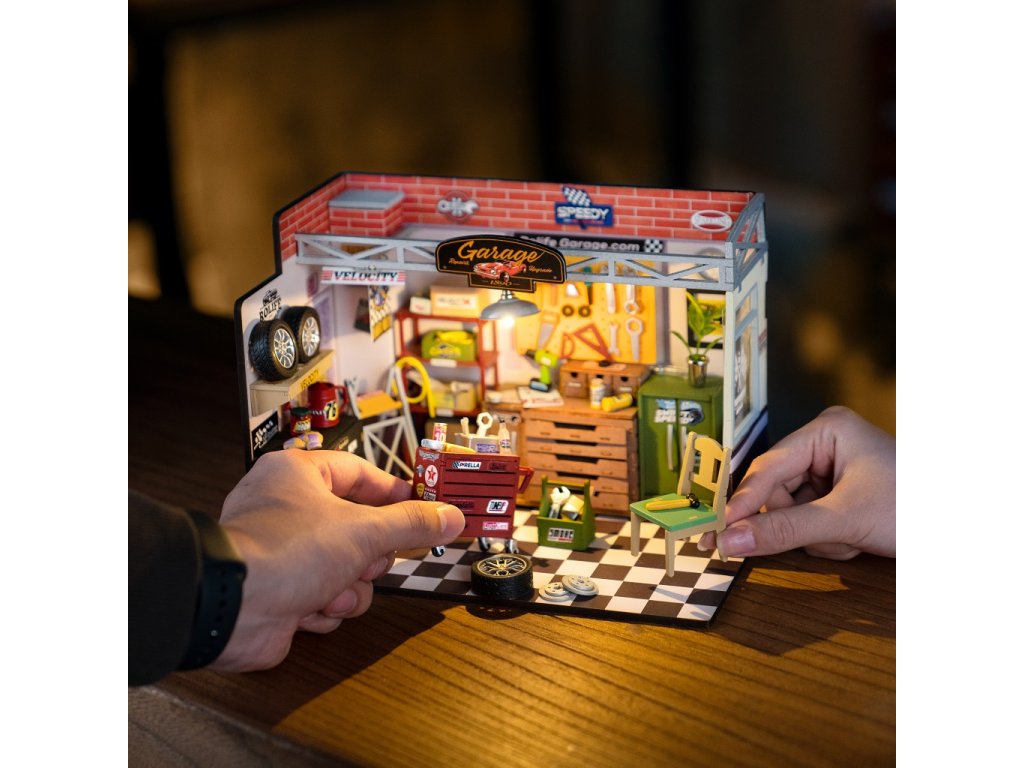 Vítejte v naší útulné garáži - svůj koutek zde najde opravdu každý! Místnost je dostatečně osvětlena stropní LED lampou. Disponuje prostorem jenž je ideálně optimalizován pro jakoukoliv kutilskou výzvu. Najdete zde i vše co je pro provoz garáže potřeba. Závěsný panel s příslušenstvím, skříňky, regály, cihly, pneumatiky či plechovky s různými lepidly a oleji... vskutku dílna snů! Objevte svět detailních miniatur Robotime přicházejících v podobě jedinečných výtvarných stavebnic. Při jejich sestavování strávíte příjemné chvíle a výsledkem můžete zkrášlit zákoutí svého pokoje. Každá ze stavebnic je dodávána v rozloženém stavu. V balení spolu se všemi součástmi a podrobným návodem naleznete lepidlo i jiné nástroje. Zpravidla si při sestavování a úpravách ale vystačíte s obyčejnými nůžkami, které doma jistě vždy najdete. Výtvarné sady jsou rozděleny hned do několika různých řad a tvoří výjimečně pestrou nabídku. Je Vám bližší obytný prostor, podnik, nebo něco jiného? Snadno si vyberete! Hlavní vlastnosti: stavebnice včetně příslušenství k sestaveníodhadovaná doba sestavení 3-4 hodinyLED osvětlení (baterie 2xAAA/LR03 nejsou součástí balení)vyžaduje vlastní nůžky a může obnášet i použití dalšího drobného nářadí