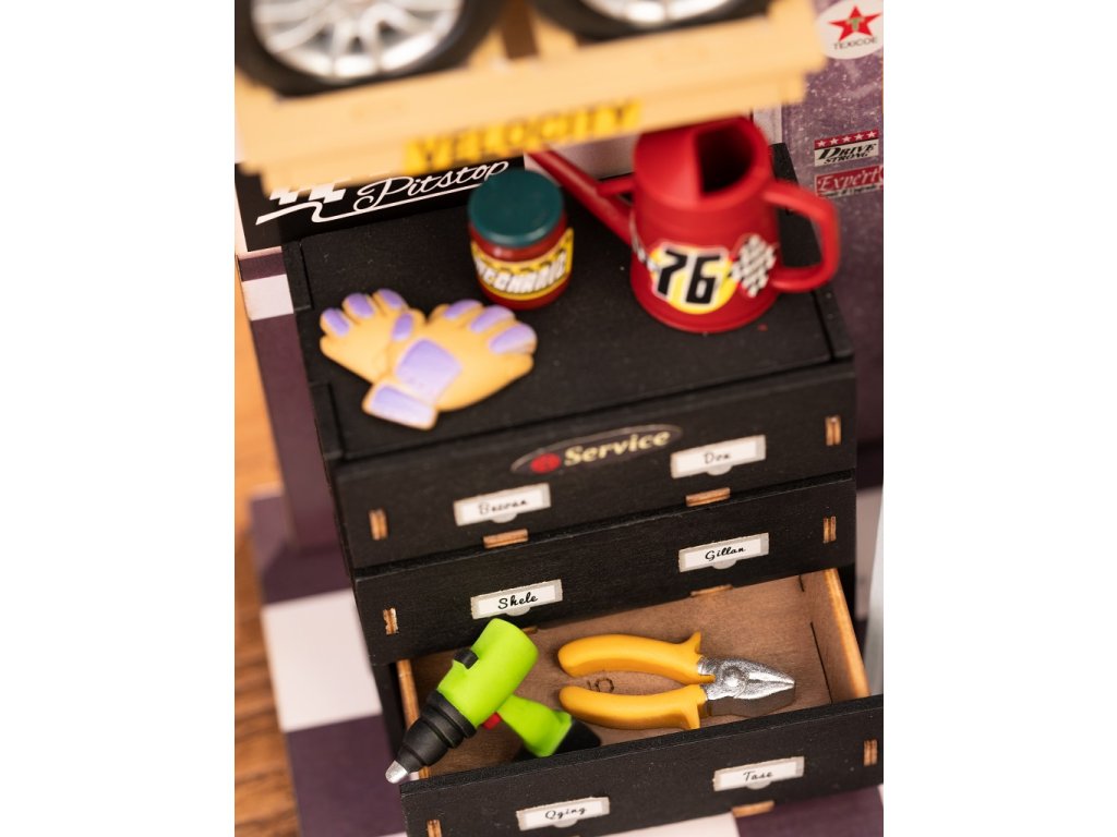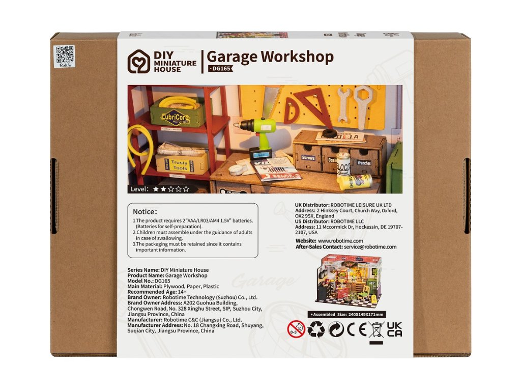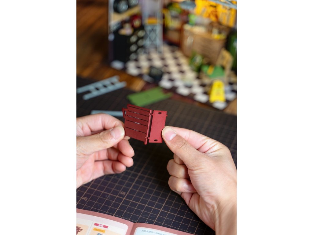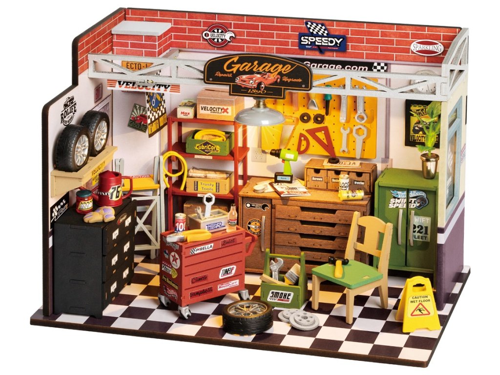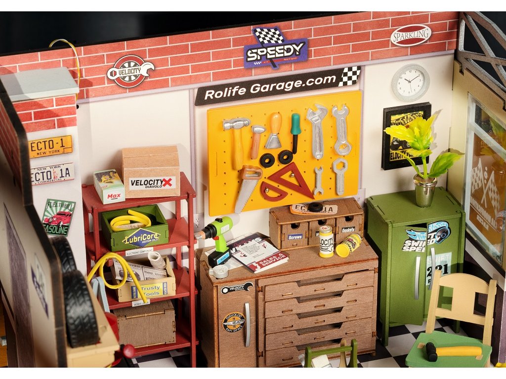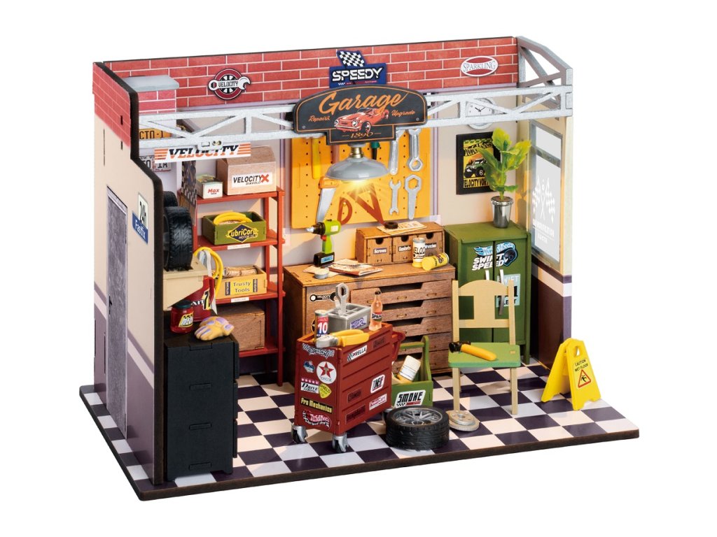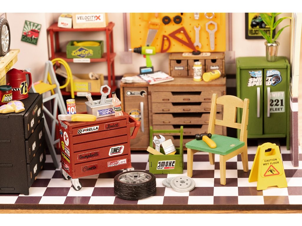 Vítejte v naší útulné garáži - svůj koutek zde najde opravdu každý! Místnost je dostatečně osvětlena stropní LED lampou. Disponuje prostorem jenž je ideálně optimalizován pro jakoukoliv kutilskou výzvu. Najdete zde i vše co je pro provoz garáže potřeba. Závěsný panel s příslušenstvím, skříňky, regály, cihly, pneumatiky či plechovky s různými lepidly a oleji... vskutku dílna snů! Objevte svět detailních miniatur Robotime přicházejících v podobě jedinečných výtvarných stavebnic. Při jejich sestavování strávíte příjemné chvíle a výsledkem můžete zkrášlit zákoutí svého pokoje. Každá ze stavebnic je dodávána v rozloženém stavu. V balení spolu se všemi součástmi a podrobným návodem naleznete lepidlo i jiné nástroje. Zpravidla si při sestavování a úpravách ale vystačíte s obyčejnými nůžkami, které doma jistě vždy najdete. Výtvarné sady jsou rozděleny hned do několika různých řad a tvoří výjimečně pestrou nabídku. Je Vám bližší obytný prostor, podnik, nebo něco jiného? Snadno si vyberete! Hlavní vlastnosti: stavebnice včetně příslušenství k sestaveníodhadovaná doba sestavení 3-4 hodinyLED osvětlení (baterie 2xAAA/LR03 nejsou součástí balení)vyžaduje vlastní nůžky a může obnášet i použití dalšího drobného nářadí