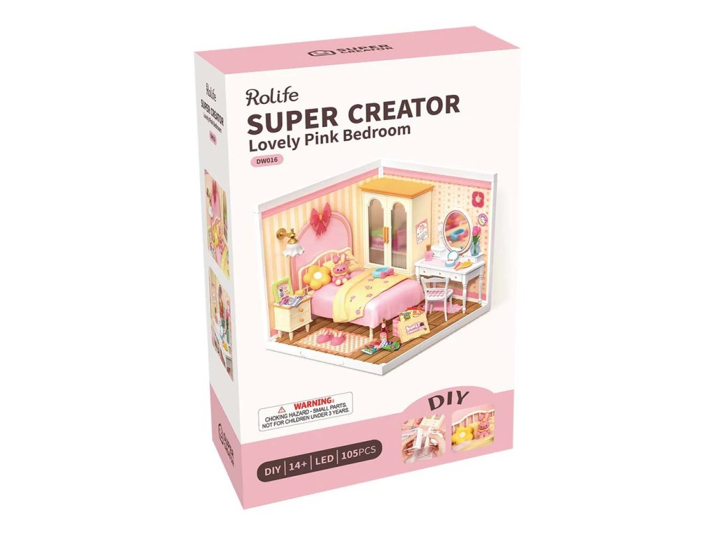RoboTime 3D dřevěná skládačka Miniatura domečku Růžový pokojíček