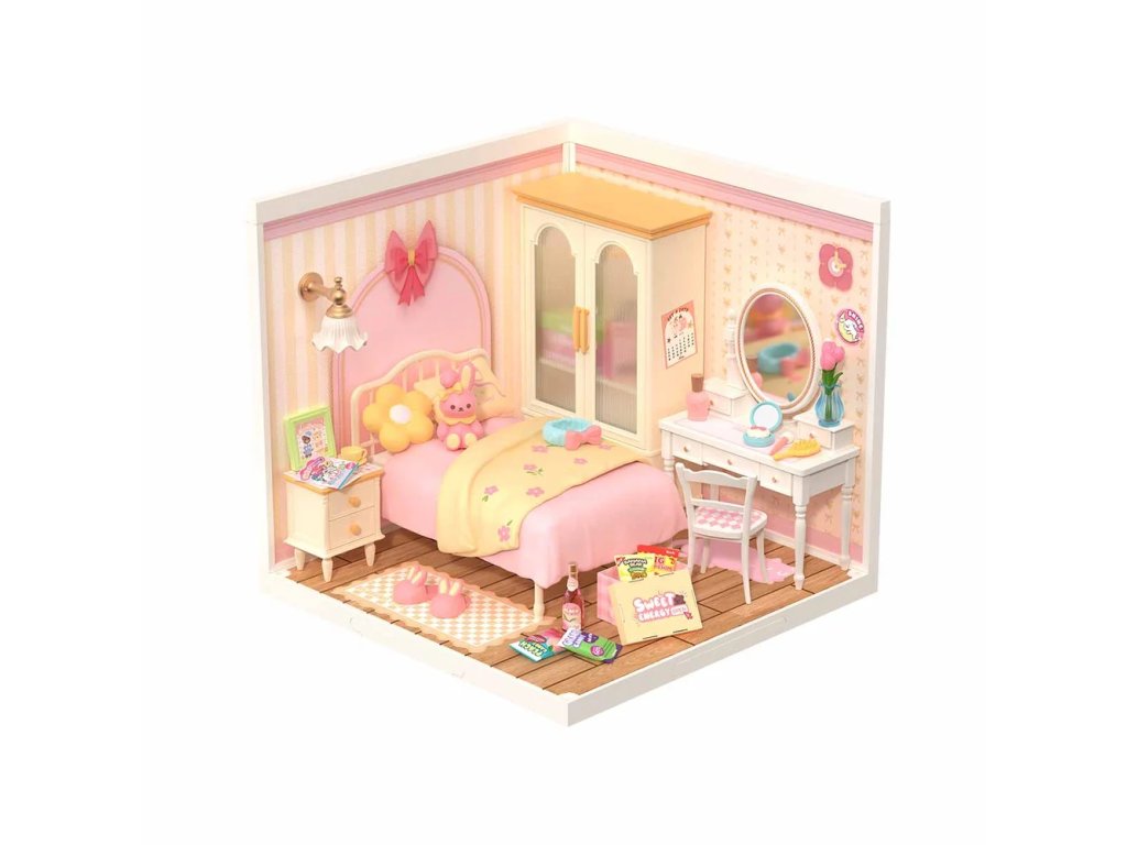 Pohodlný, stylový a jednoduchý pokojíček má vše, co si jen můžete přát! Vyrobte si vlastní krásnou růžovou ložnici, miniaturní domeček s elegantním nábytkem, jemnými růžovými akcenty a teplými žlutými slunečními tóny, které odrážejí pohodlí a štěstí. Vestavěná skříň obsahuje úhledně složené oblečení a doplňky, komoda a zrcadlo Vám umožní se upravit, malebný noční stolek ukrývá zarámovanou vzpomínku, čtecí lampička vrhá jantarovou záři a plyšový králíček sedí na posteli na polštáři ve tvaru květiny. Dokonce i podlaha je poseta útulnými detaily, jako je vzorovaný koberec, pohodlné pantofle a čokoládové pamlsky a občerstvení. Každý detail dělá z tohoto pokojíčku skutečně osobní a neodolatelný prostor, kde je možné si odpočinout, načerpat nové síly a oddat se svým koníčkům. Pojďme stavět a hrát si! Vychutnejte si atmosféru klidu a pohody, která je umocněna příjemným LED osvětlením. 3D skládačka je skvělý způsob, jak si užít kreativní a edukativní hraní a zároveň vytvořit nádherný model, který se může stát netradičním dárkem či ozdobou interiéru. Skládání 3D skládačky podporuje rozvoj jemné motoriky, prostorového myšlení a trpělivosti. Je to možnost, jak kombinovat zábavu se vzděláváním. Všechny přesně vyřezané dílky do sebe lehce zapadnou bez použití lepidla či nástrojů, aby výsledek byl stabilní a odolný. Skládačka je dodávána v nesloženém stavu, zabalená v krabici s podrobným návodem k sestavení. K napájení slouží přepínací napájecí box a kabel USB-C 5 V, který je součástí balení. Hlavní vlastnosti: 105 dílkůdoba skládání 45 minutLED osvětlenísestavení bez použití lepidla a nástrojůvýjimečný vzhledvhodné pro děti i dospělérozvíjí logické a motorické dovednostipodporuje trpělivost dětíideální jako dárek nebo jedinečná dekorace