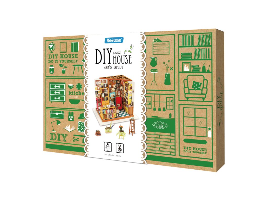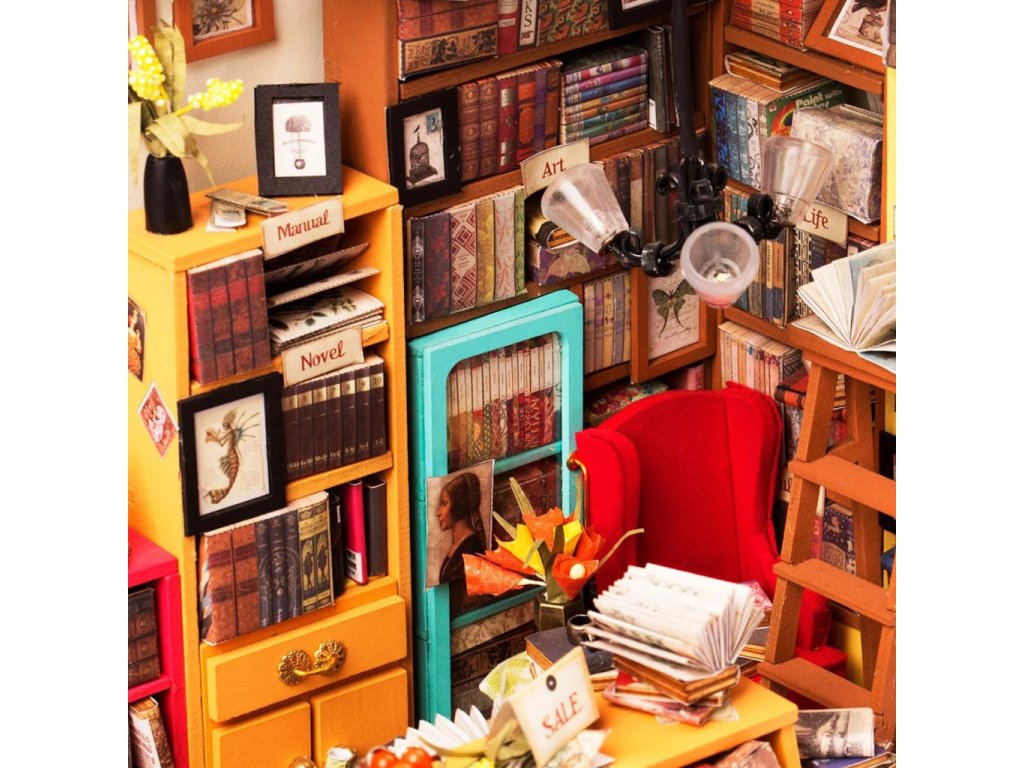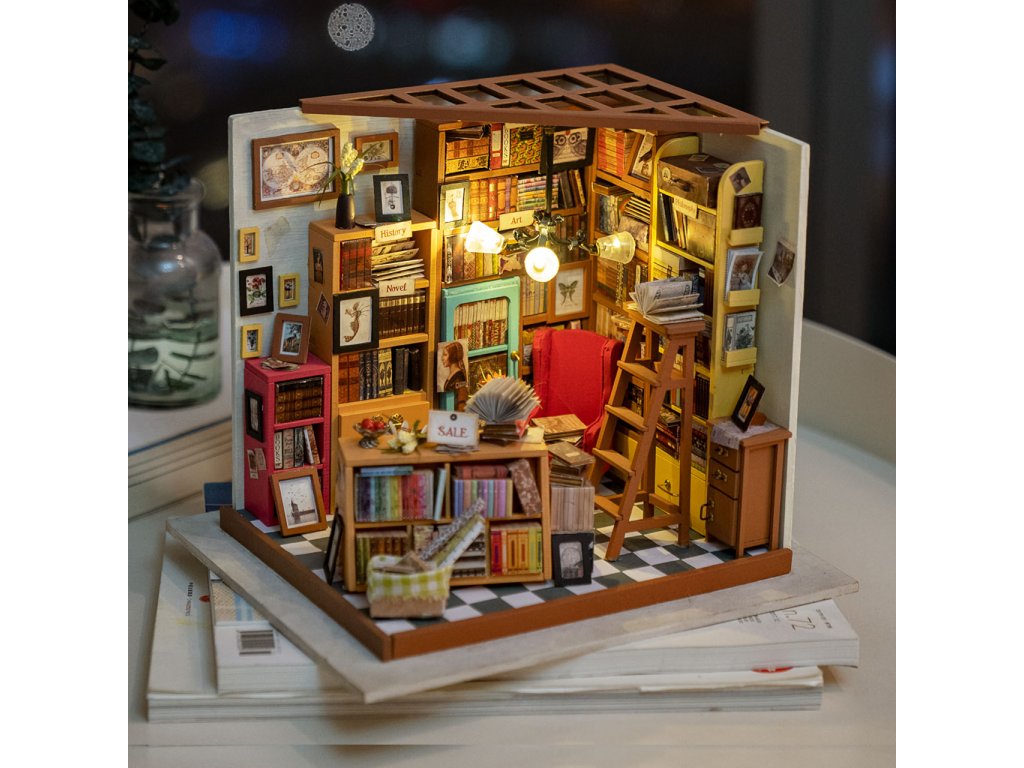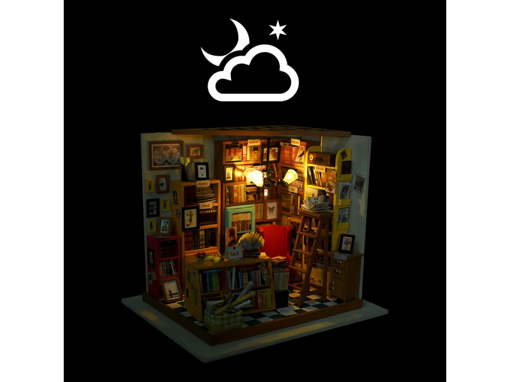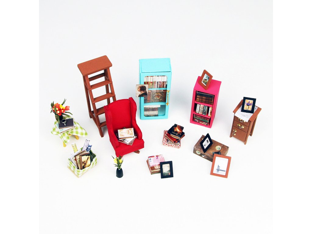 Když se nejlépe cítíte obklopeni knihami. Objevte svět detailních miniatur Robotime přicházejících v podobě jedinečných výtvarných stavebnic. Při jejich sestavování strávíte příjemné chvíle a výsledkem můžete zkrášlit zákoutí svého pokoje. Téměř každá souprava je vybavena LED osvětlením, které spolu s barevností výsledného modelu vykouzlí útulnou atmosféru. Výtvarné sady jsou rozděleny hned do několika různých řad a tvoří výjimečně pestrou nabídku. Je Vám bližší obytný prostor, podnik, nebo něco jiného? Snadno si vyberete! Každá ze stavebnic je dodávána v rozloženém stavu. Stavba zahrnuje převážně barvení a lepení již nařezaných dílů z překližky, přípravu kartonových nebo látkových prvků a papírových potisků. V balení spolu se všemi součástmi a podrobným návodem naleznete lepidlo, barvy, štětec i jiné nástroje. K pohodlné vestavbě osvětlení doporučujeme přichystat si půlkulaté kleště. Zpravidla si při sestavování a úpravách ale vystačíte s obyčejnými nůžkami, které doma jistě vždy najdete. Hlavní vlastnosti:obsahuje díly stavebnice, lepidlo, barvy, štětec aj.odhadovaná doba sestavení 20 hodinLED osvětlení (2×CR2032 baterie jsou součástí balení)stavba vyžaduje vlastní nůžky a může obnášet i použití dalšího drobného nářadí
