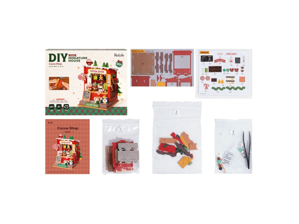 RoboTime 3D dřevěná skládačka Miniatura domečku Stánek s kakaem
