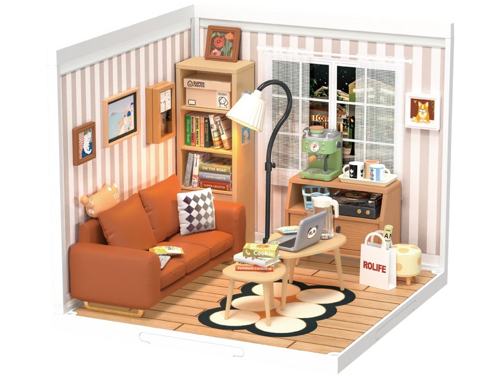 RoboTime 3D dřevěná skládačka Miniatura domečku Útulný obývací pokoj