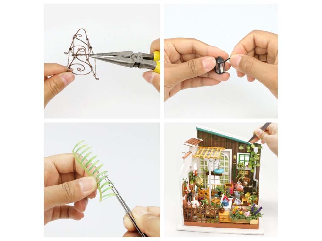 Terasa skýtá okouzlující klid a pohodu. Objevte svět detailních miniatur Robotime přicházejících v podobě jedinečných výtvarných stavebnic. Při jejich sestavování strávíte příjemné chvíle a výsledkem můžete zkrášlit zákoutí svého pokoje. Téměř každá souprava je vybavena LED osvětlením, které spolu s barevností výsledného modelu vykouzlí útulnou atmosféru. Výtvarné sady jsou rozděleny hned do několika různých řad a tvoří výjimečně pestrou nabídku. Je Vám bližší obytný prostor, podnik, nebo něco jiného? Snadno si vyberete! Každá ze stavebnic je dodávána v rozloženém stavu. Stavba zahrnuje převážně barvení a lepení již nařezaných dílů z překližky, přípravu kartonových nebo látkových prvků a papírových potisků. V balení spolu se všemi součástmi a podrobným návodem naleznete lepidlo, barvy, štětec i jiné nástroje. K pohodlné vestavbě osvětlení doporučujeme přichystat si půlkulaté kleště. Zpravidla si při sestavování a úpravách ale vystačíte s obyčejnými nůžkami, které doma jistě vždy najdete. Hlavní vlastnosti:obsahuje díly stavebnice, lepidlo, barvy, štětec aj.odhadovaná doba sestavení 20 hodinLED osvětlení (2×CR2032 baterie jsou součástí balení)stavba vyžaduje vlastní nůžky a může obnášet i použití dalšího drobného nářadí