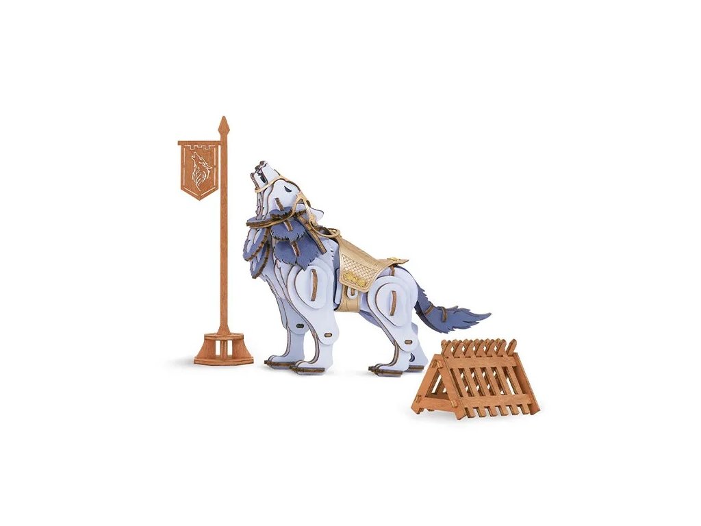 Tento skvělý bojovník má své místo v první bojové linii. S ním nebude žádná bitva prohrána! 3D dřevěné puzzle Vlk bojovník - Warior Wolf přinese spoustu zábavy nejen při sestavování, ale i při hraní. Výborně se doplňuje s Bojovným koněm (TWA01), Bojovým slonem (kód TWA02) a Bojovným lvem (TWA03). S nimi bude armáda neporazitelná! Případně mohou změřit své síly mezi sebou! Model má pohyblivé nohy, kožené stříbrné brnění se zlatými detaily, které poskytuje všestrannou ochranu před záludnými nepřáteli. Zároveň je krásnou dekorací na vystavení pro nadšence 3D puzzlí. Upozornění: Není vhodné pro děti do 3 let, protože obsahuje malé součásti – hrozí nebezpečí udušení. Balící materiál není hračka. Rozvíjí logické myšlení, trpělivost, motoriku a fantazii. Součástí balení je také bojová vlajka a dřevěná zábrana. Vše je vyrobeno pomocí přesného leaserem řezaného dřeva. Skládačka je dodávána v nesloženém stavu, balena v krabici. 3D puzzle od firmy Robotime nese označení 100% FSC. Splňuje všechny normy EU. Součástí je detailní návod k sestavení, který Vás provede krok za krokem. Hlavní vlastnosti: přírodní dřevěné 3D puzzlerozvíjí jemnou motoriku, představivost a logické myšleníjednoduchá obtížnostvhodné od 8 let Dokumenty: návod